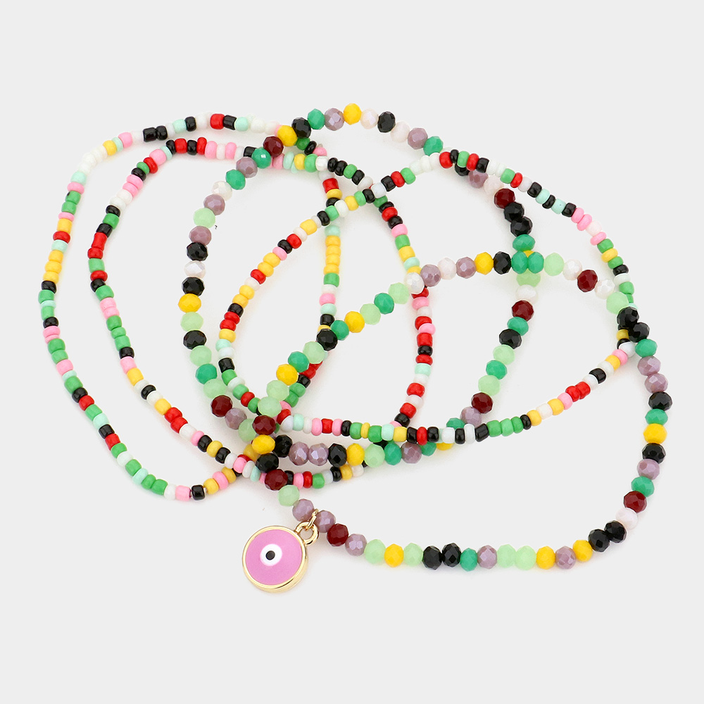 5PCS - Evil Eye Charm Colorful Beaded Stretch Bracelets