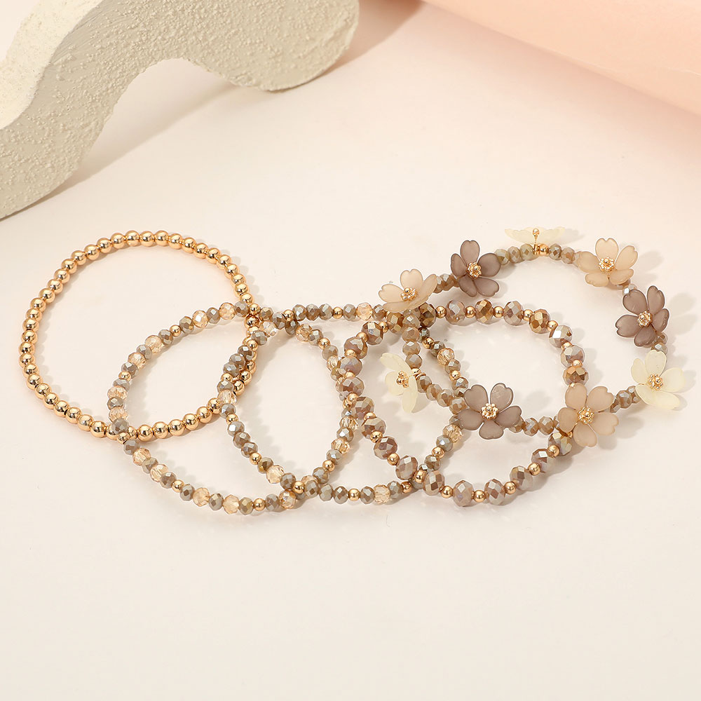 5PCS - Floral Faceted Beaded Stretch Multi Layered Bracelets