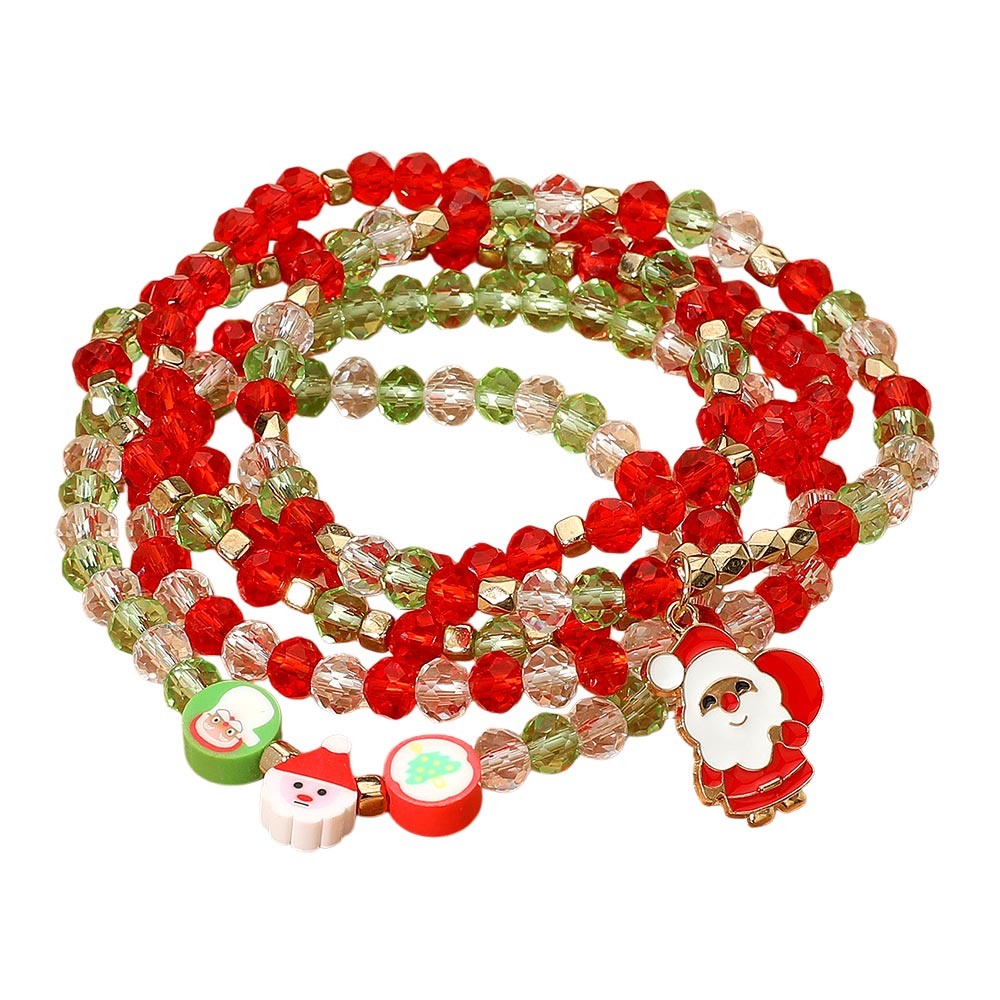 Details • Size : 1.2" H • Stretchable • Celebrate the holidays with this festive beaded bracelet set featuring vibrant beads, playful Santa and seasonal charm accents. Stretchy and comfortable, these bracelets are perfect for adding cheerful flair to your outfits or gifting as a fun and stylish accessory for the holiday season. • Lead and Nickel Compliant