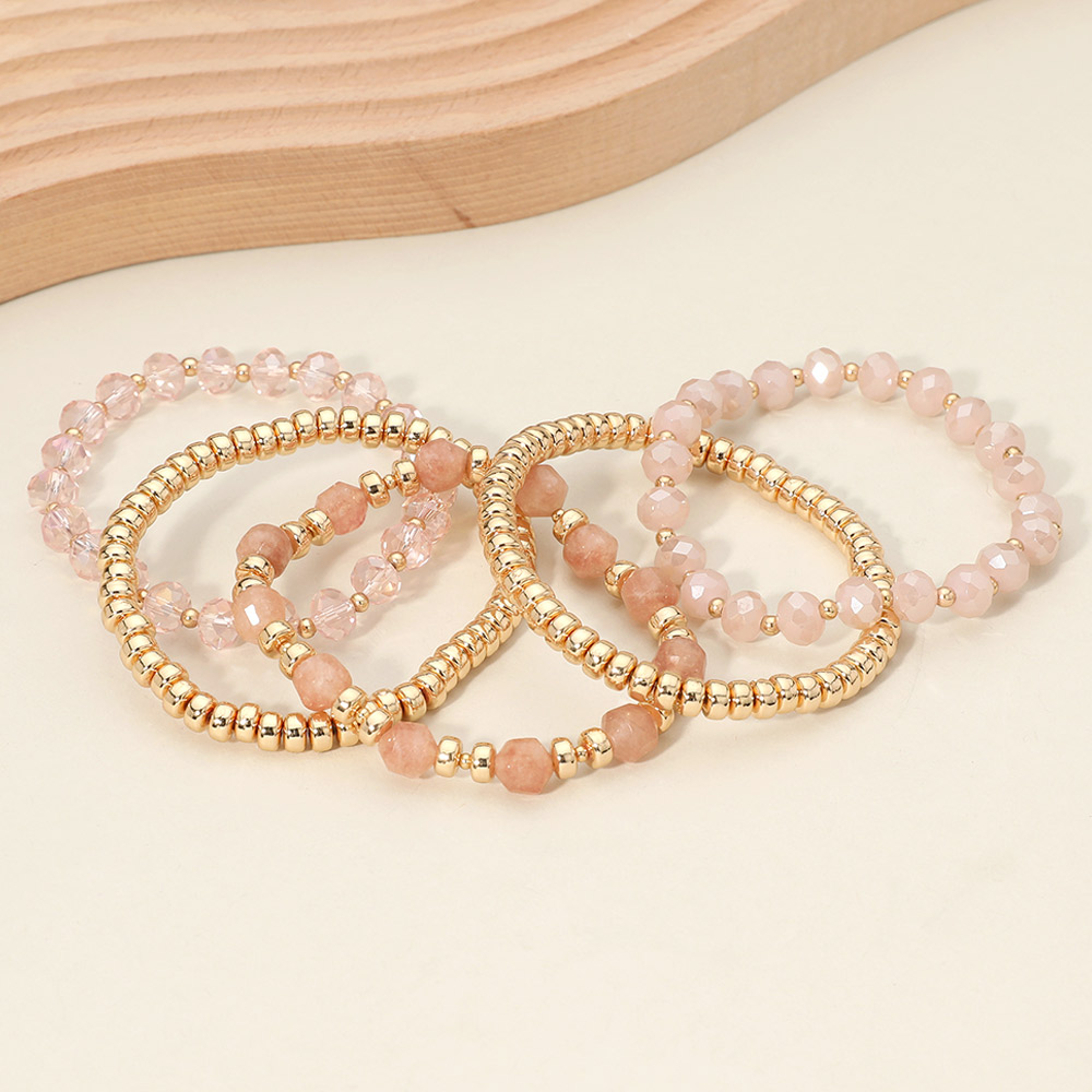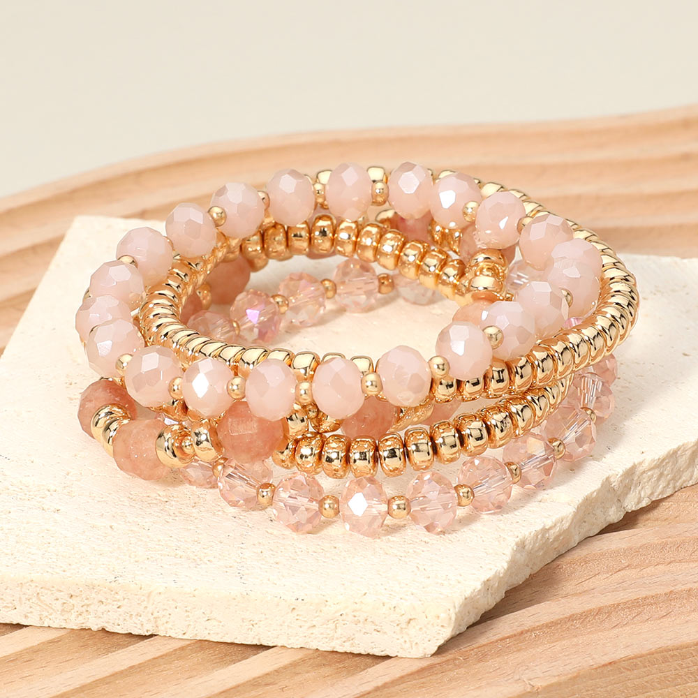 5PCS - Metal Ball Faceted Beaded Stretch Multi Layered Bracelets