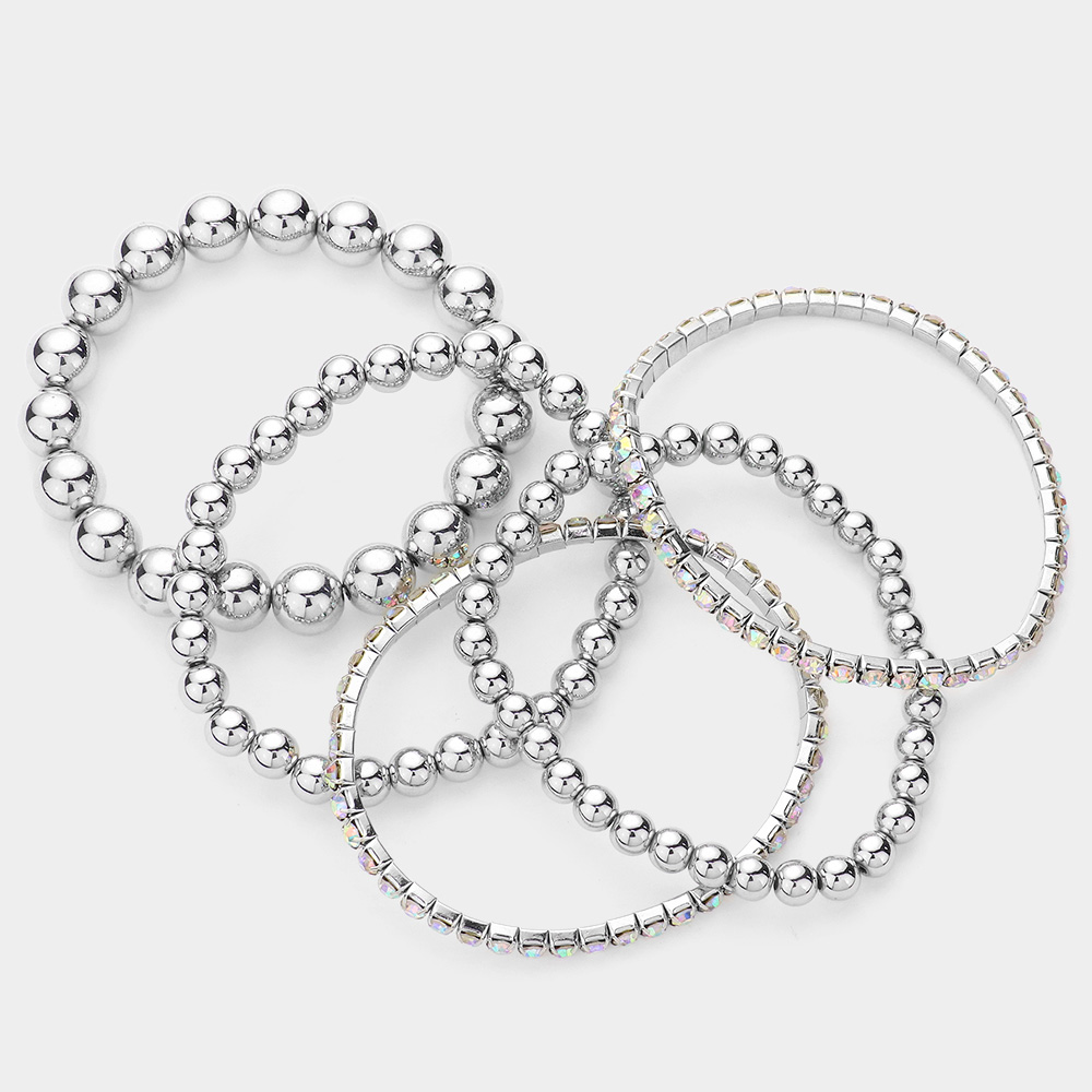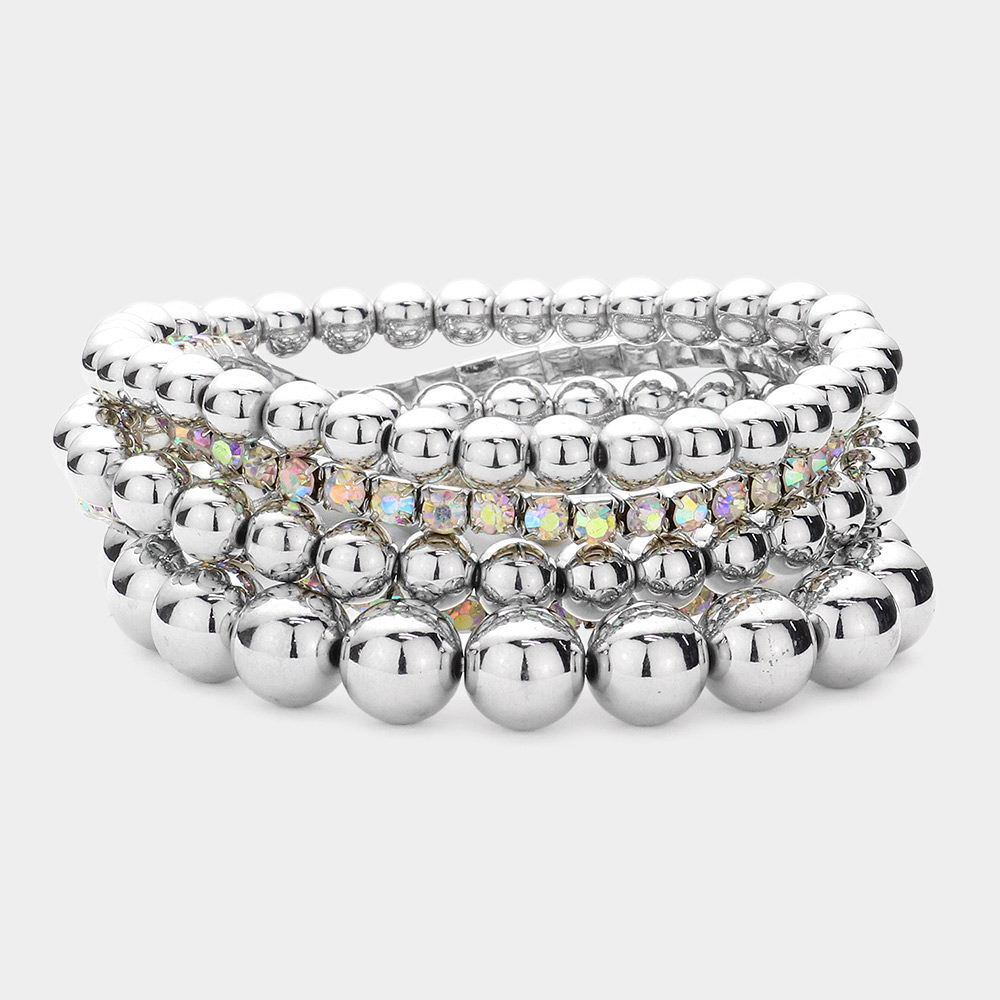 5PCS - Metal Ball Stone Cluster Stretch Multi Layered Bracelets