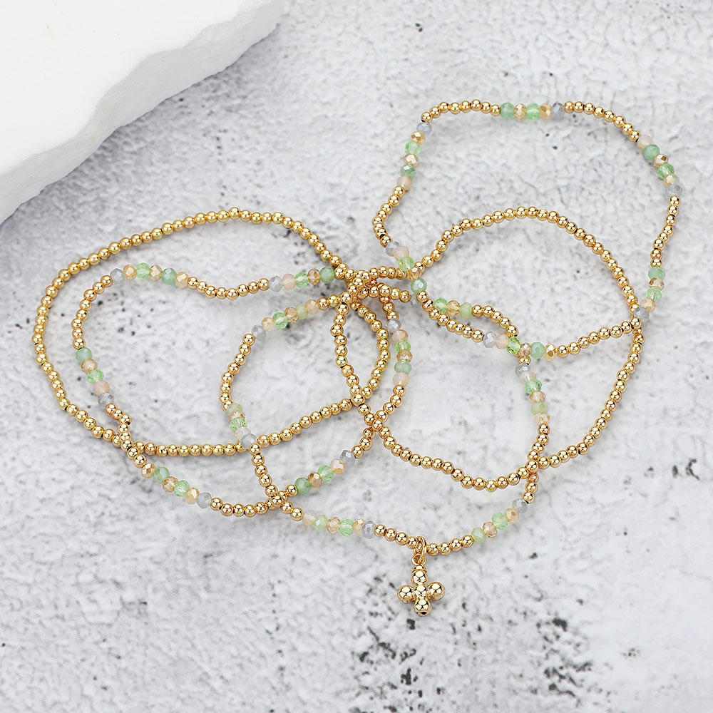 5PCS - Metal Bubble Flower Charm Accented Beaded Stretch Multi Layered Bracelets
