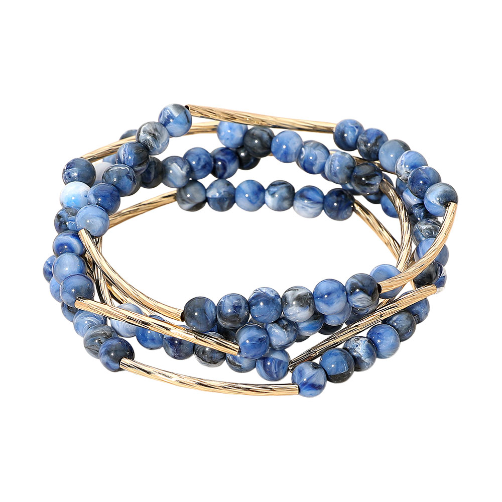 5PCS -Round Ball Curved Textured Bar Beaded Stretch Multi Layered Bracelets