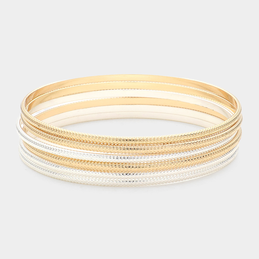 6PCS - Textured Metal Multi Layered Bangle Bracelets