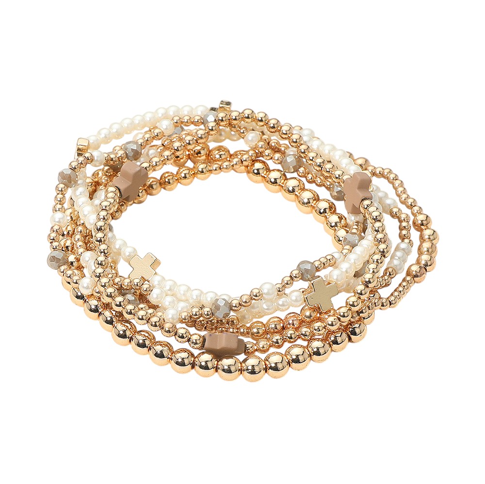 Details • Size : 1.3" H • Stretchable • Elegant multi-strand beaded bracelet set featuring smooth and faceted beads with cross accents. Designed with stretch for a comfortable fit, this layered bracelet set adds a touch of style and meaning, perfect for casual wear, special events, or stacking with other jewelry pieces. • Lead and Nickel Compliant