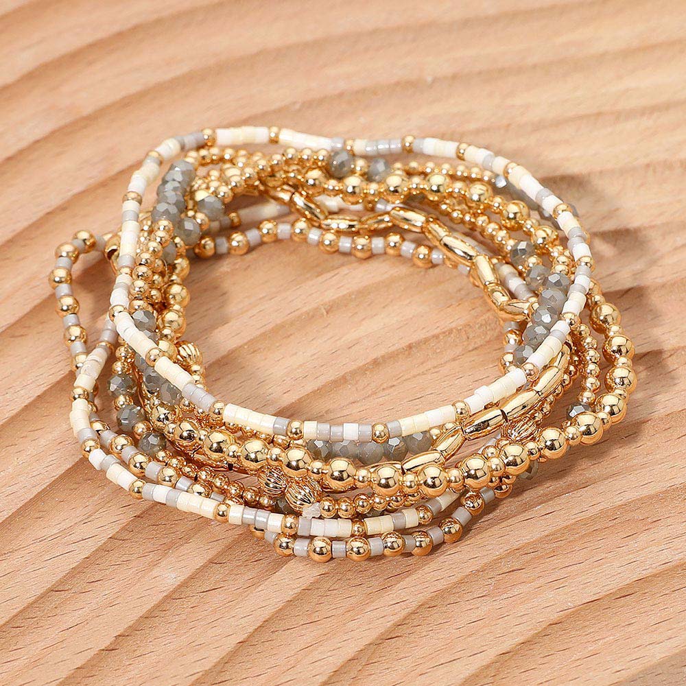 8PCS - Seed Beaded Stretch Multi Layered Bracelets