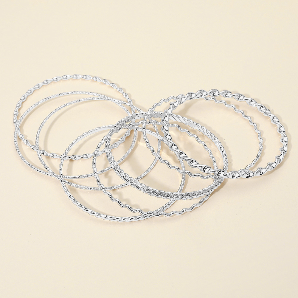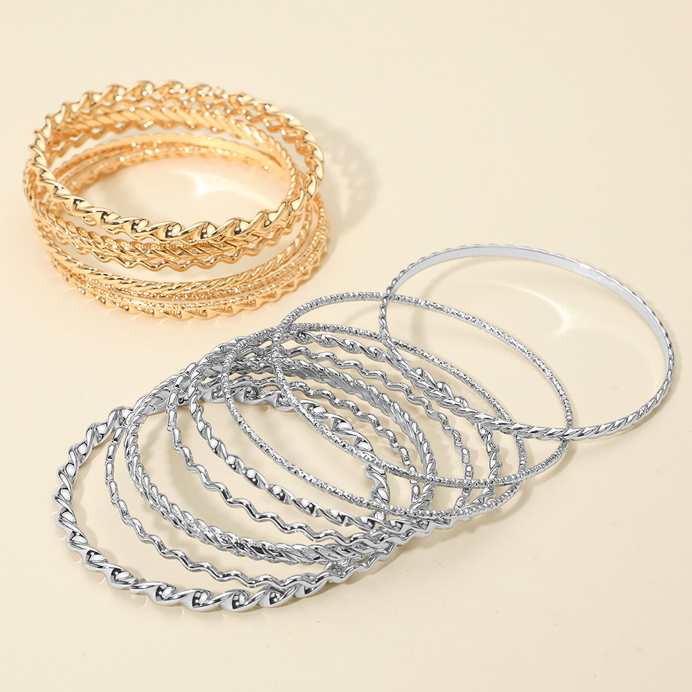 8PCS - Textured Metal Stackable Multi Layered Bangle Bracelets