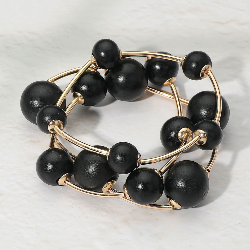 Details • Size : 1.7" H • Stretchable • Elevate your accessory game with this chunky beaded wrap bracelet featuring smooth round beads and open curve links. Its flexible design offers a comfortable fit while adding a bold yet refined touch to casual or dressy ensembles. A versatile piece for everyday flair. • Lead and Nickel Compliant