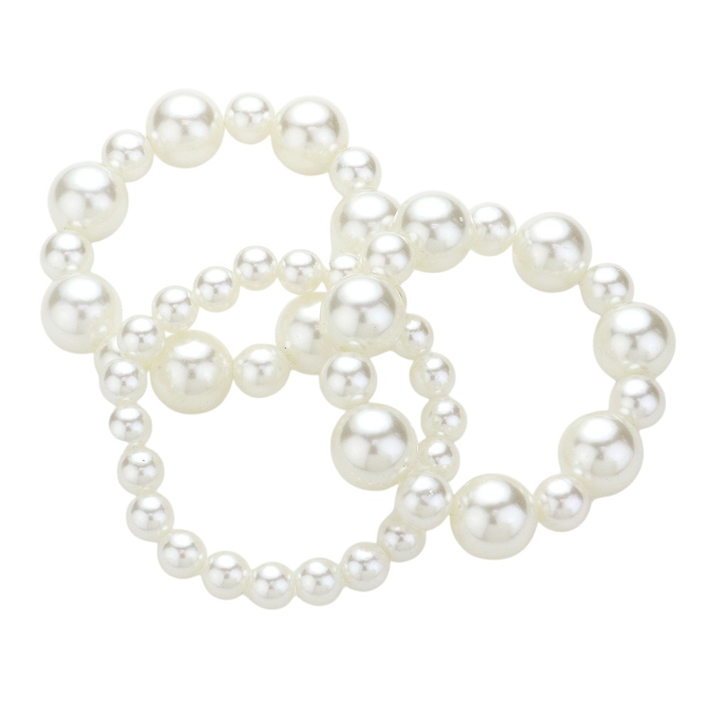 Details • Size : 1.75" H • Stretchable • Elegant triple row stretch bracelet featuring round pearl-like beads in alternating sizes. A timeless piece that adds sophistication to casual wear, weddings, parties, and formal occasions. • Lead and Nickel Compliant