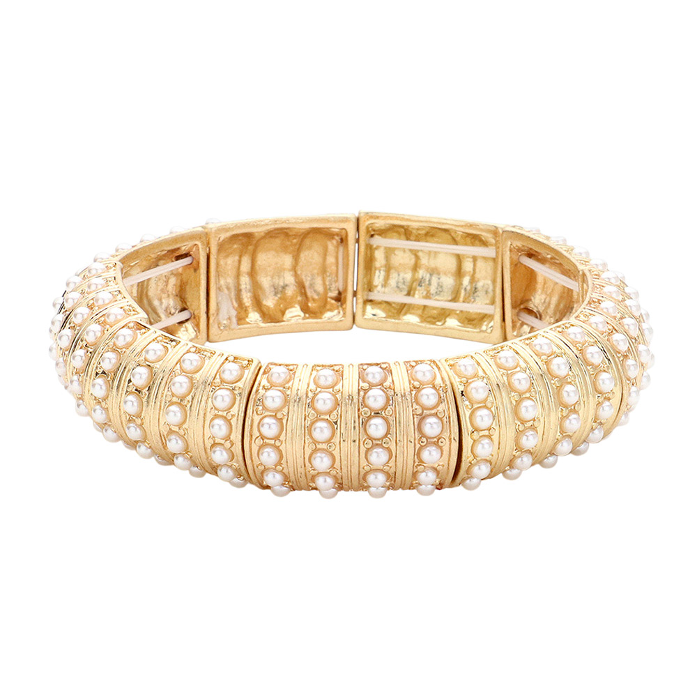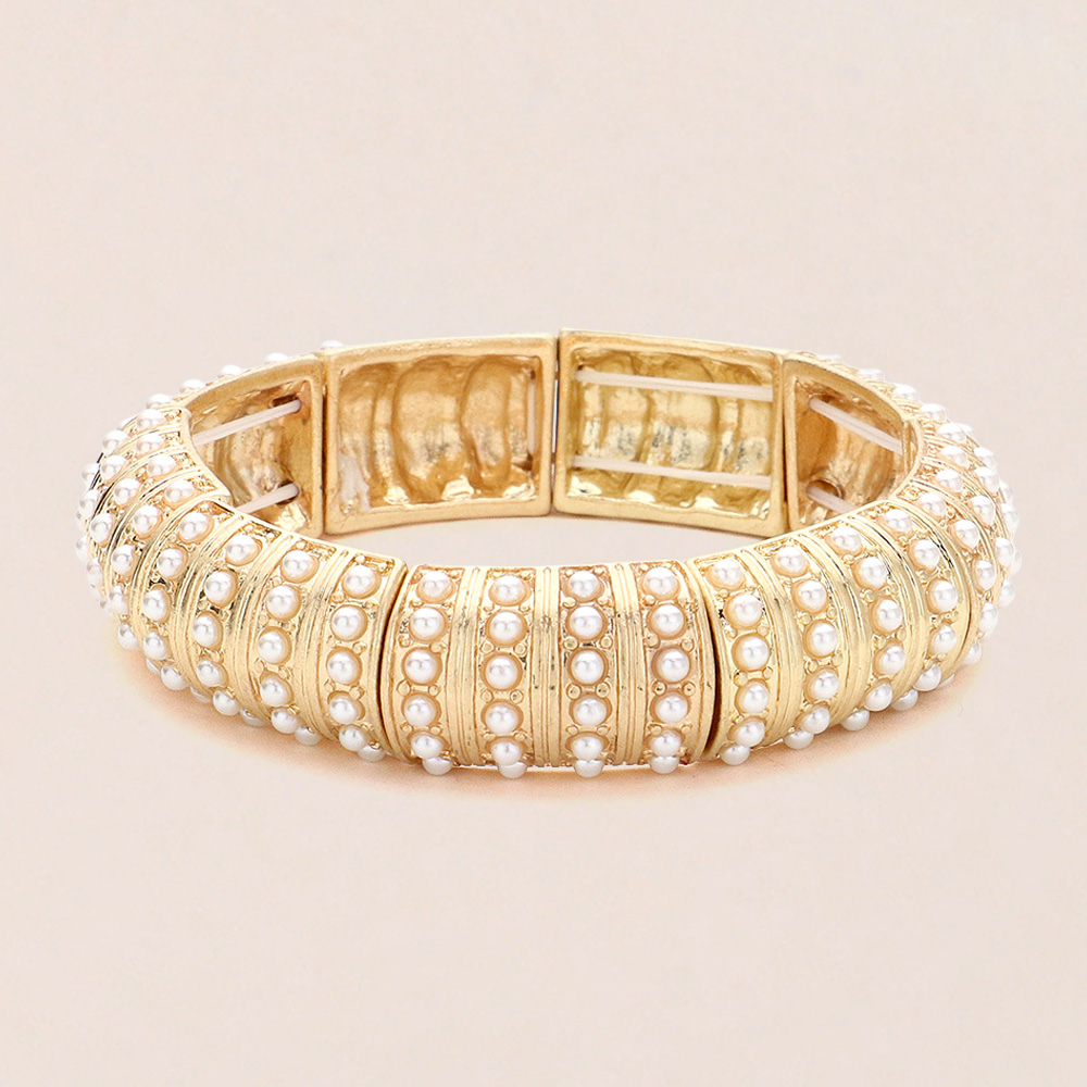 Pearl Paved Stretch Bangle Bracelet