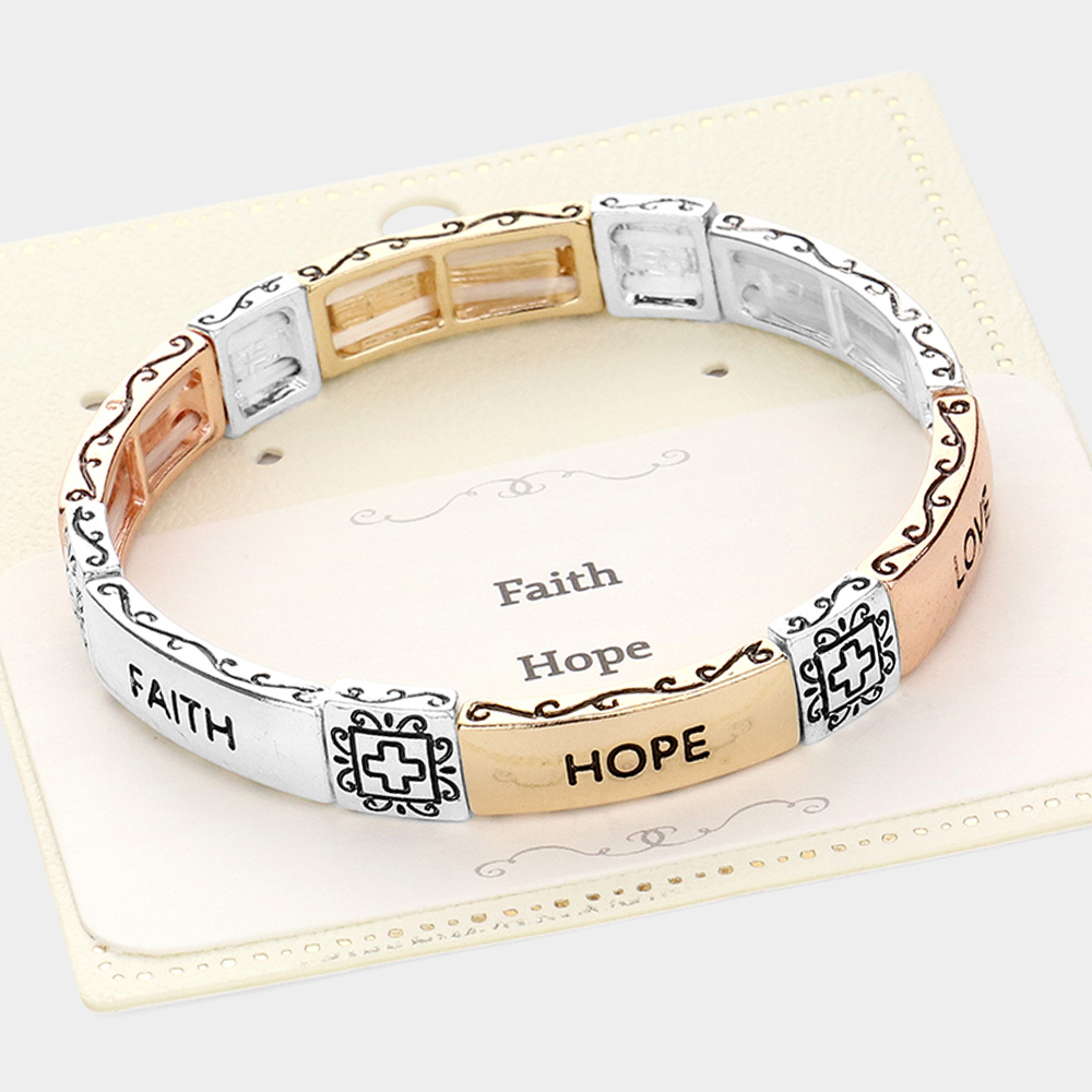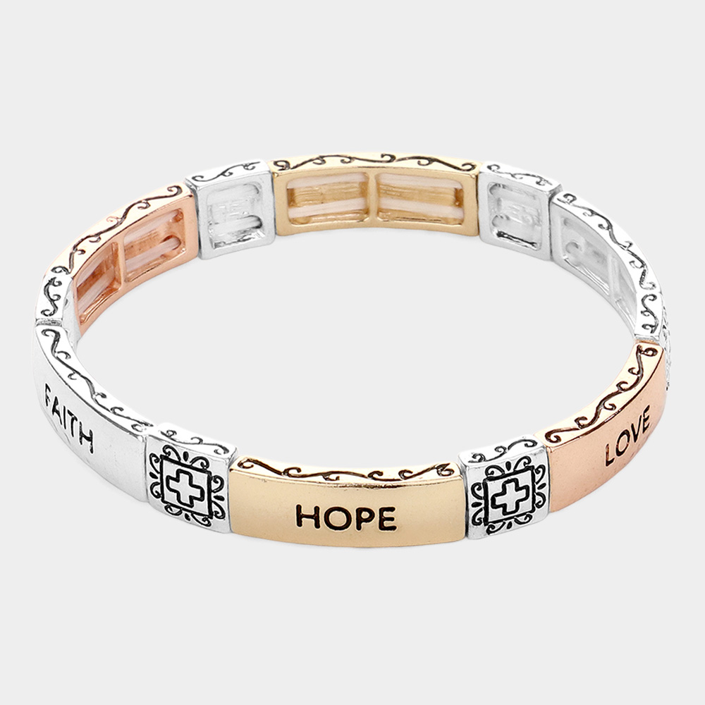 Lords Prayer Message Religious Charm Stretch Bracelet