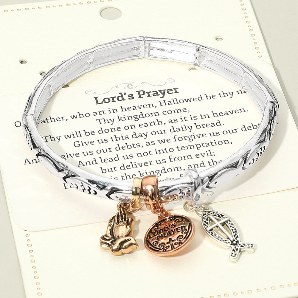 Lords Prayer Message Religious Charm Stretch Bracelet