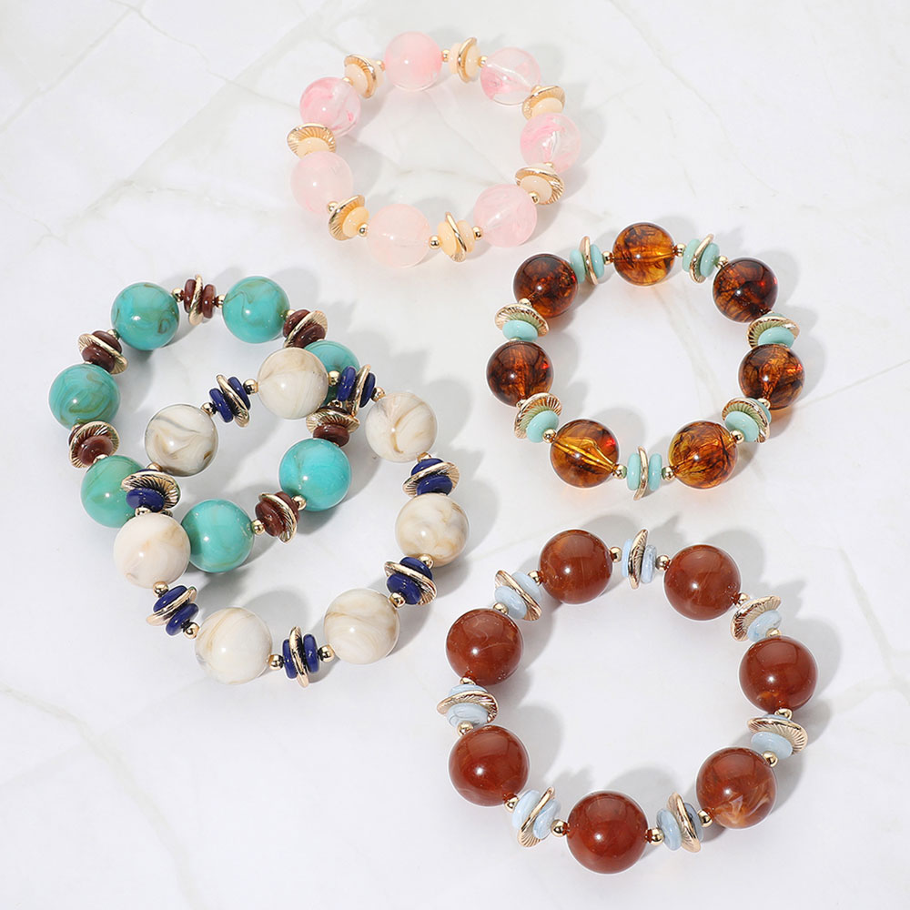Abstract Marbled Resin Ball Beaded Stretch Bracelet