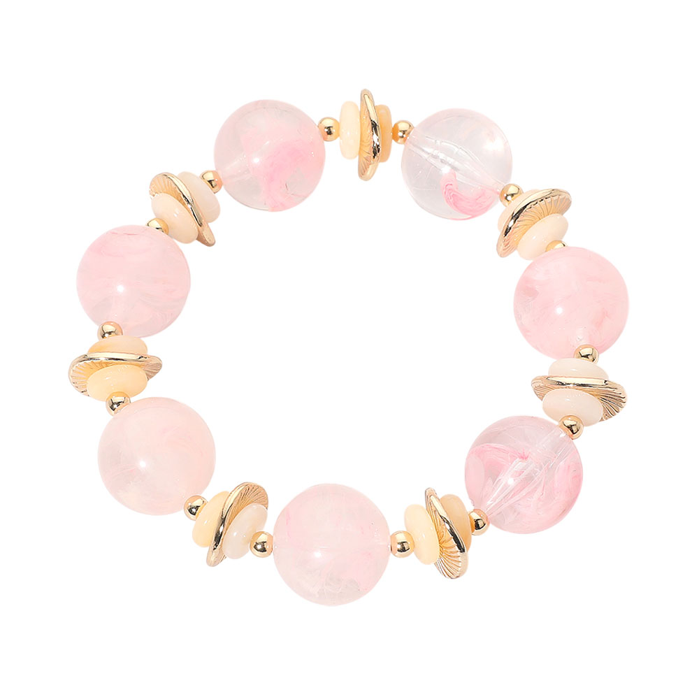 Abstract Marbled Resin Ball Beaded Stretch Bracelet