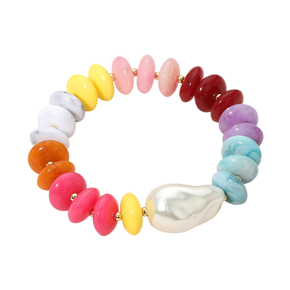 Abstract Pearl Accent Resin Pebble Beaded Stretch Bracelet