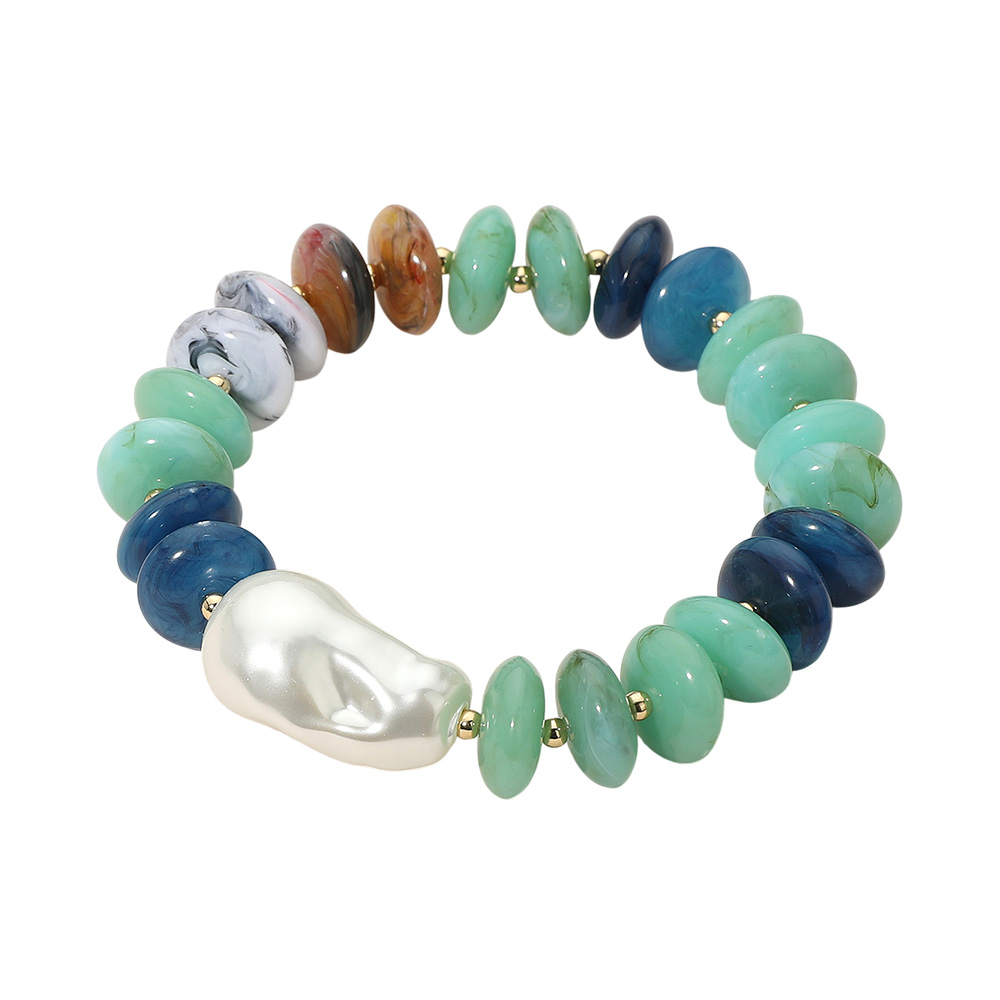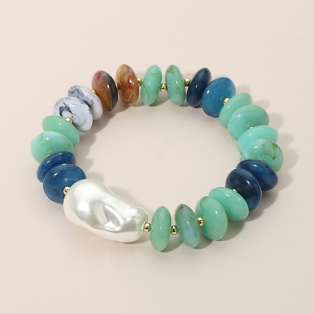 Abstract Pearl Accent Resin Pebble Beaded Stretch Bracelet