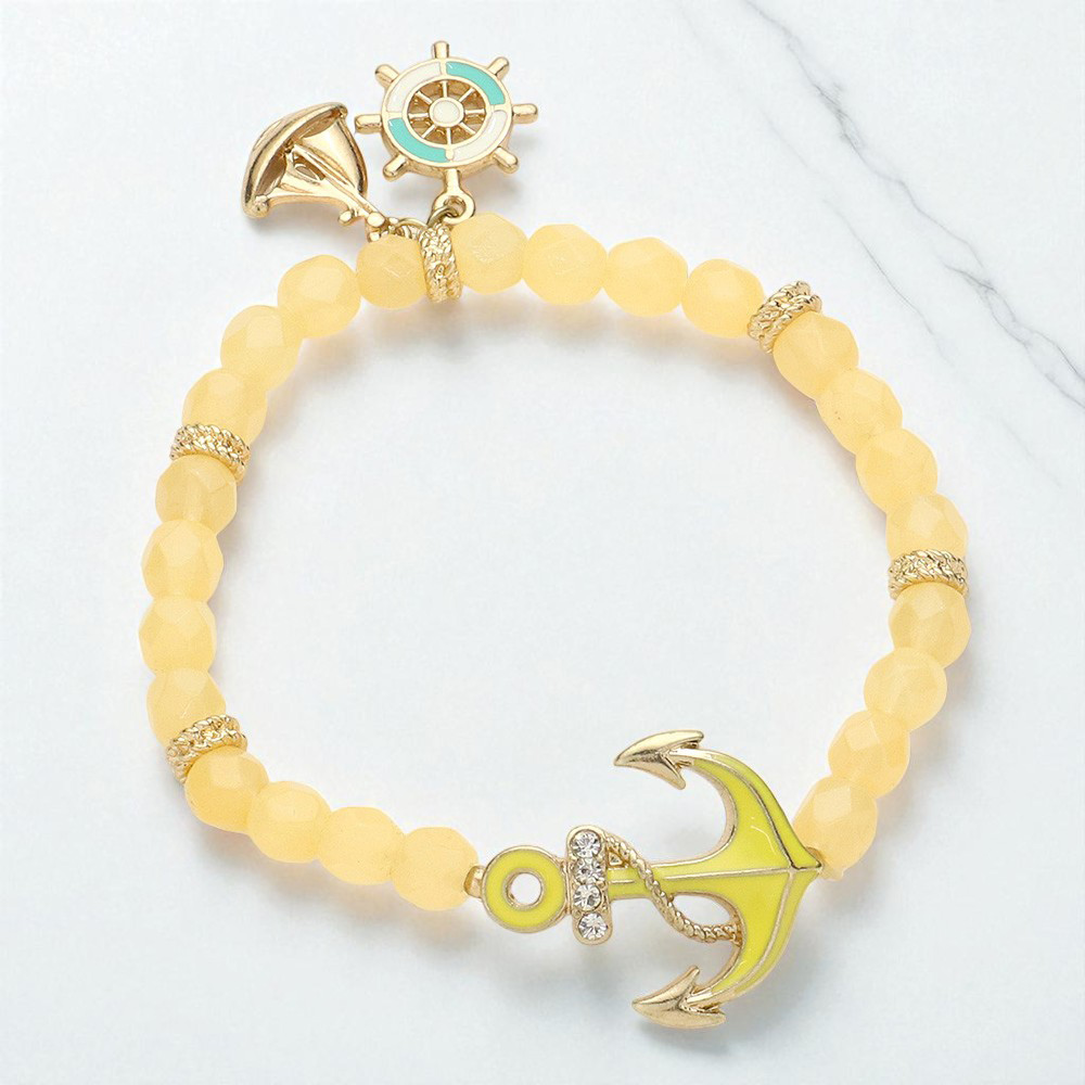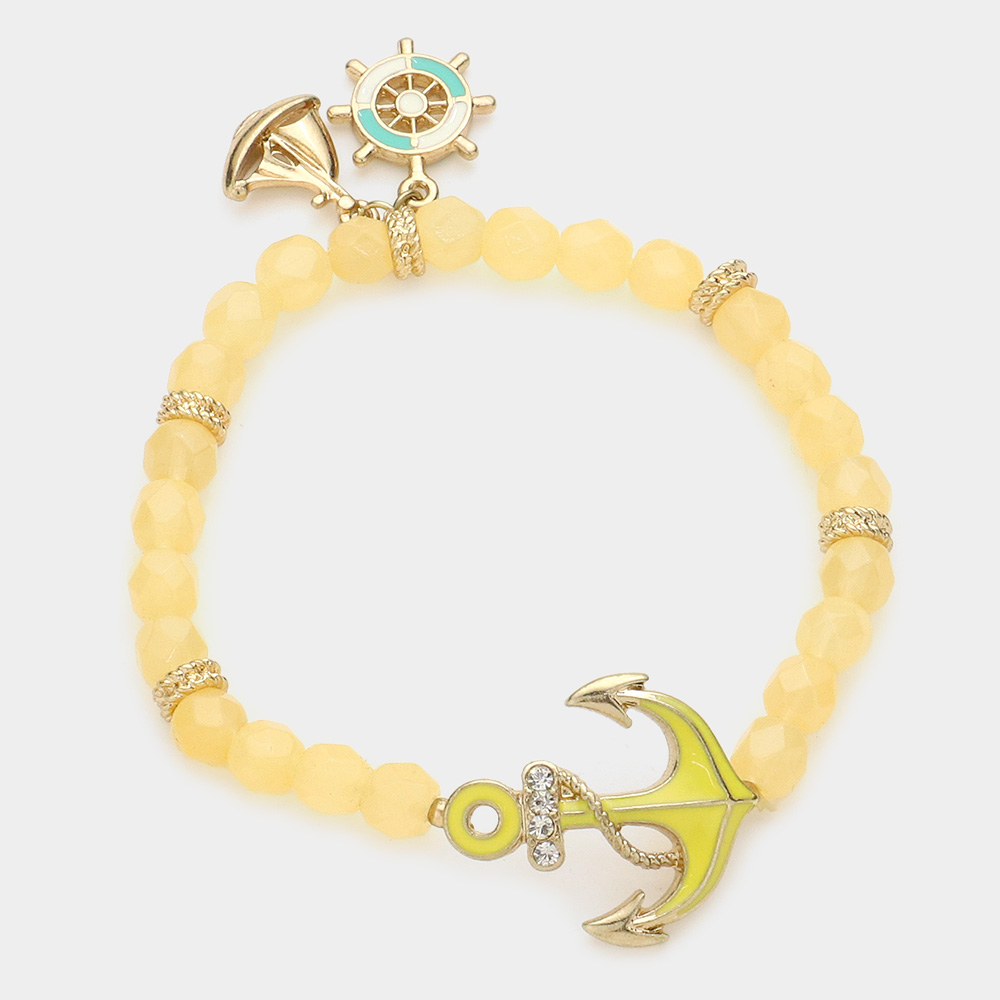 Anchor & ship wheel charm beaded stretch bracelet