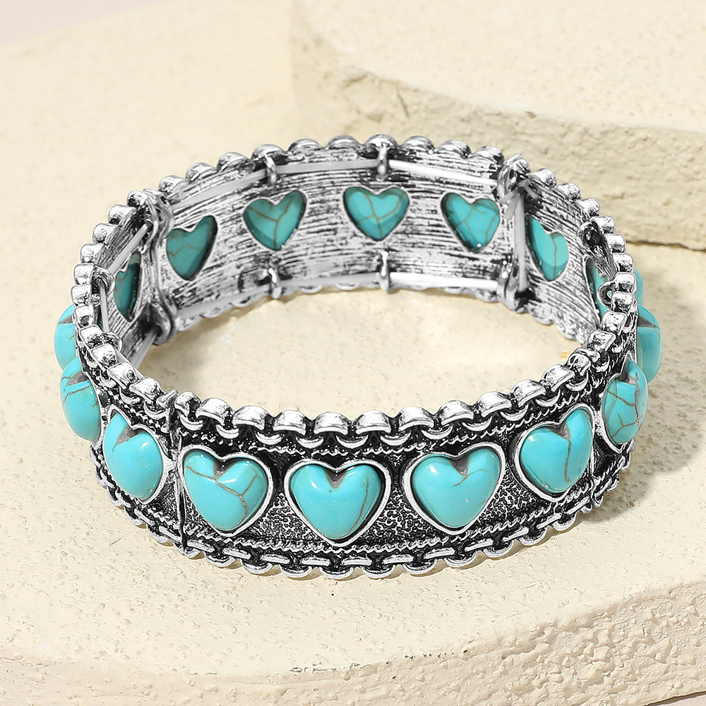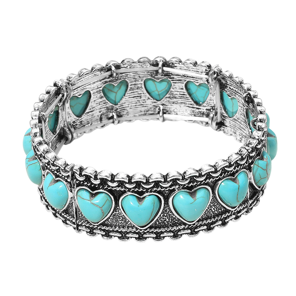 Antique Metal Boho Heart Stone Accent Stretch Bracelet