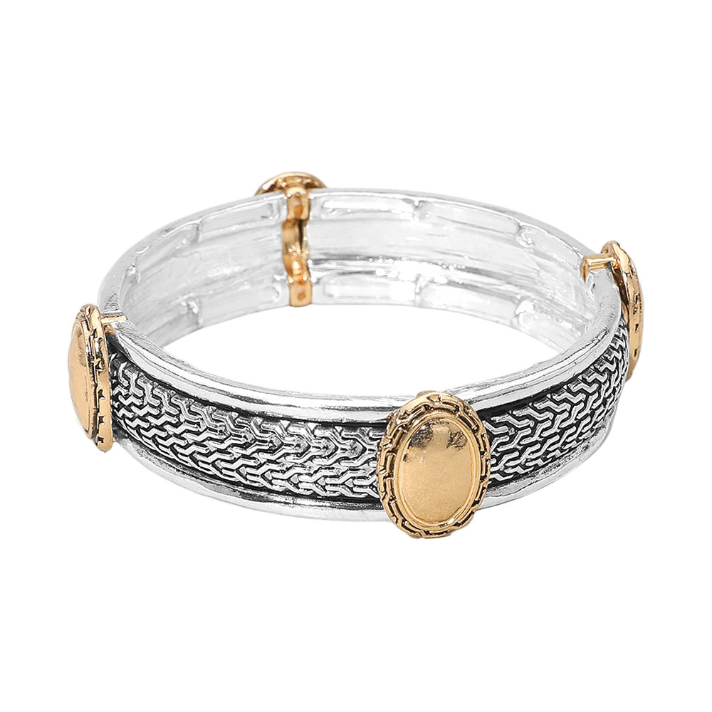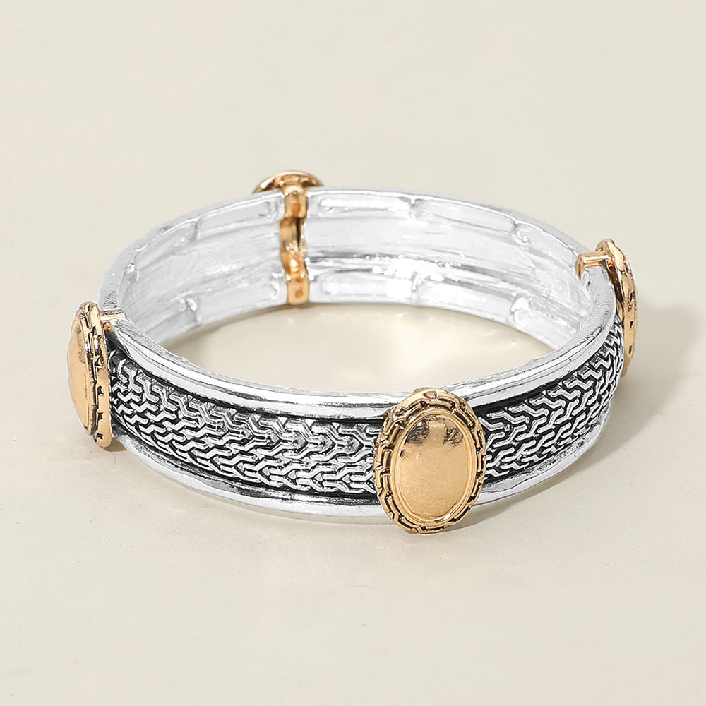Antique Metal Oval Accent Stretch Bracelet