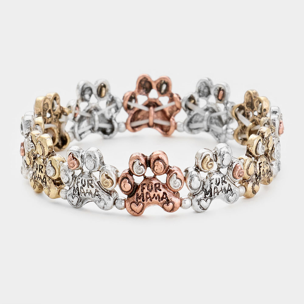 Antique Metal Paw Fur Mama Stretch Bracelet