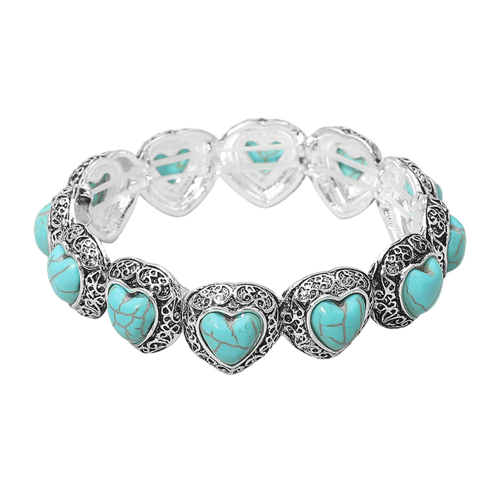 Antique Metal Scrollwork Frame Heart Tile Beaded Stretch Bracelet