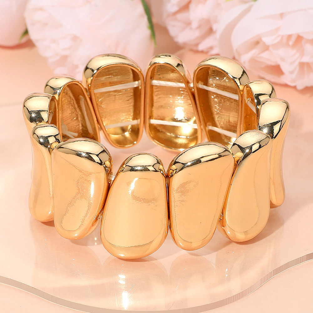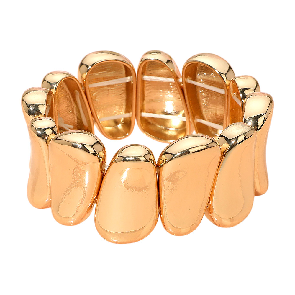 • Modern stretch bracelet featuring chunky sculpted links with a smooth finish. This bold accessory adds a statement touch to everyday and evening looks, combining comfort with contemporary flair.