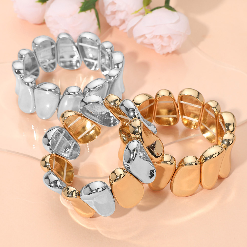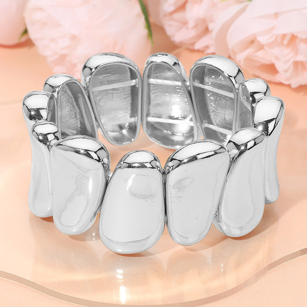 • Modern stretch bracelet featuring chunky sculpted links with a smooth finish. This bold accessory adds a statement touch to everyday and evening looks, combining comfort with contemporary flair.