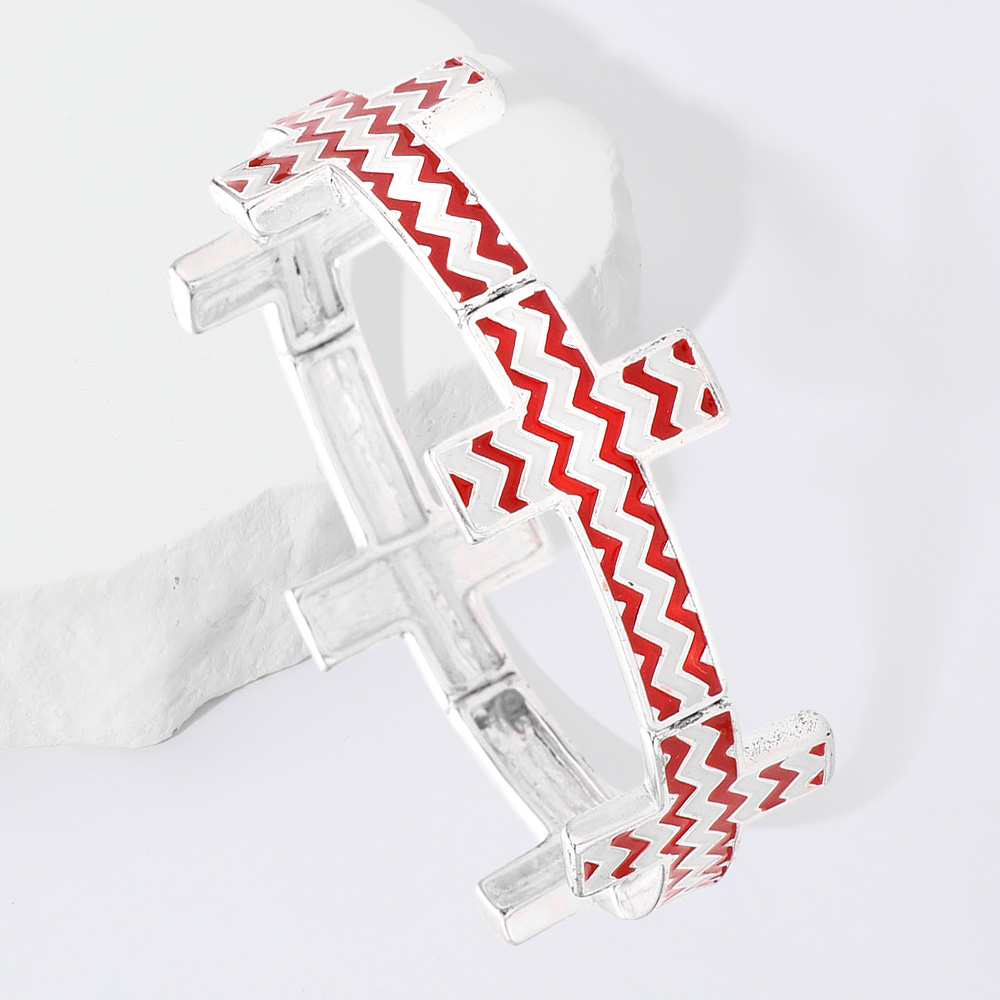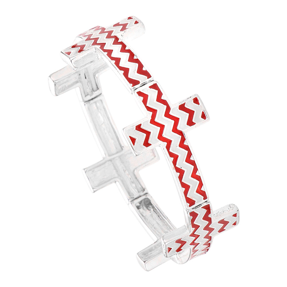 • This stretch bracelet features bold cross accents detailed with a modern chevron pattern, creating a striking blend of faith-inspired style and contemporary fashion. Easy to wear and versatile, it makes a statement piece that pairs beautifully with both casual looks and dressy outfits.