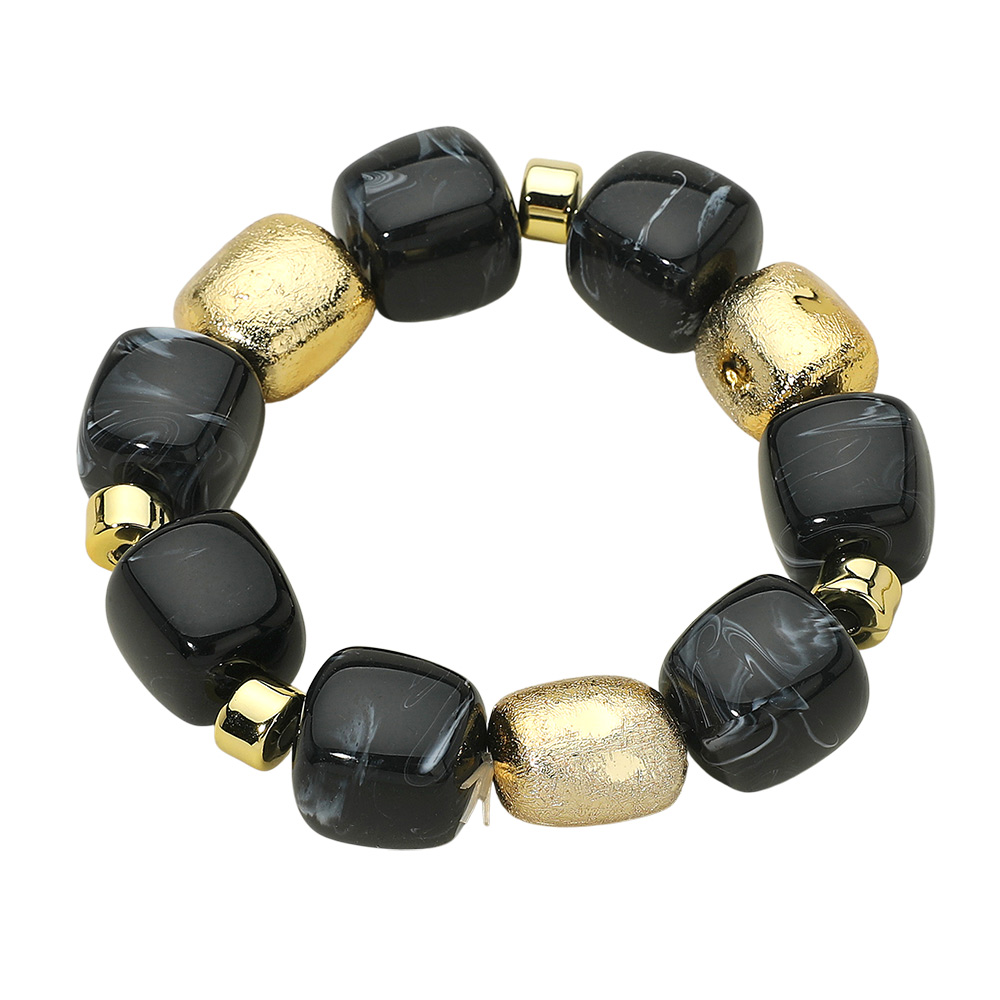 • Statement beaded stretch bracelet designed with bold chunky beads and shimmering textured accents. The elastic fit offers comfort and ease, making it a versatile accessory to elevate casual outfits or bring a polished touch to evening looks.