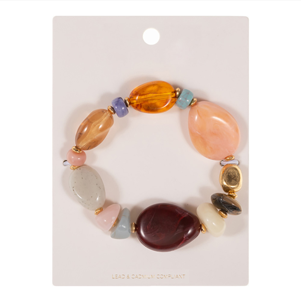 Chunky Mixed Resin Pebble Beaded Stretch Bracelet