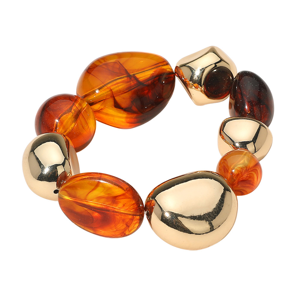 Details • Size : 1" H • Stretchable • Make a statement with this chunky stretch bracelet featuring a mix of bold resin beads and polished metal accents. Its modern yet versatile design adds texture and shine, making it the perfect accessory to elevate casual outfits or complement elegant evening looks. • Lead and Nickel Compliant