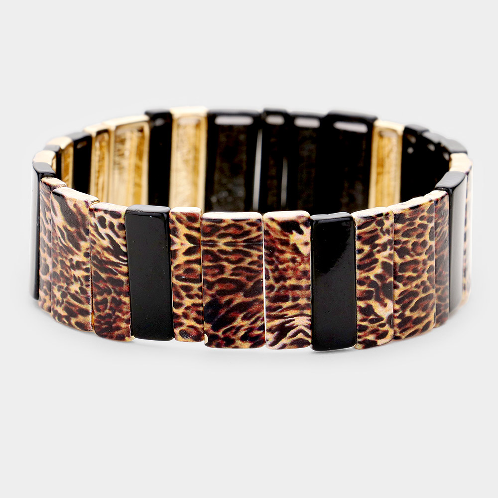 Leopard Glitter Hexagon Stone Dangle Earrings