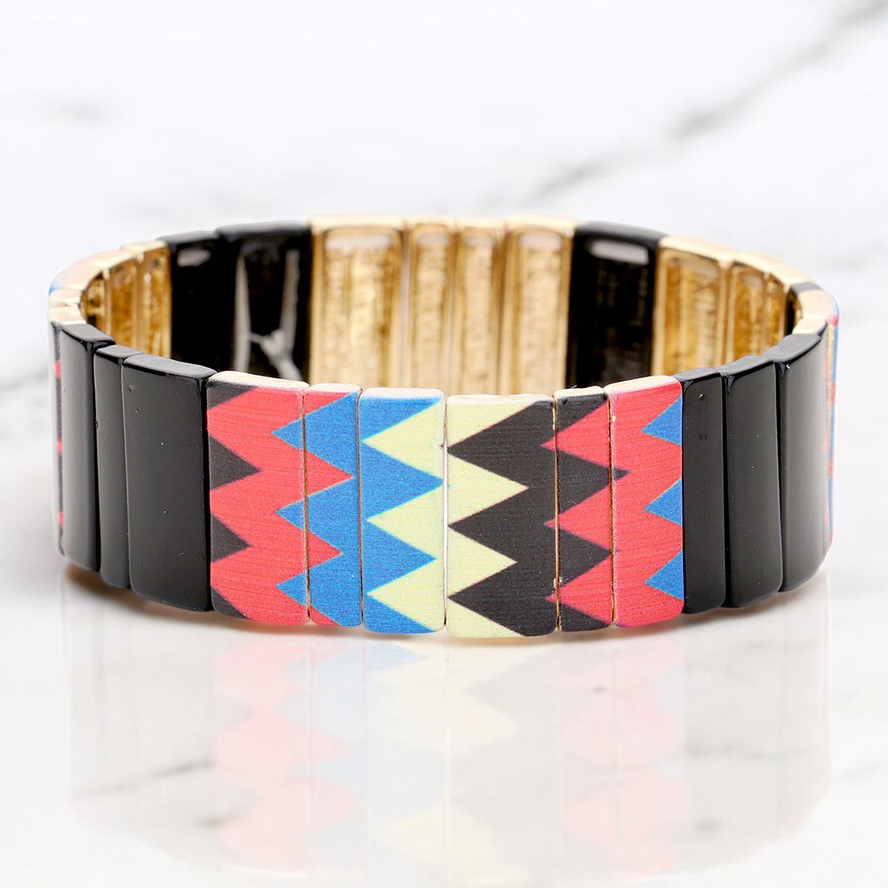 2PCS - Chunky Resin Tube Metal Ball Stretch Multi Layered Bracelets