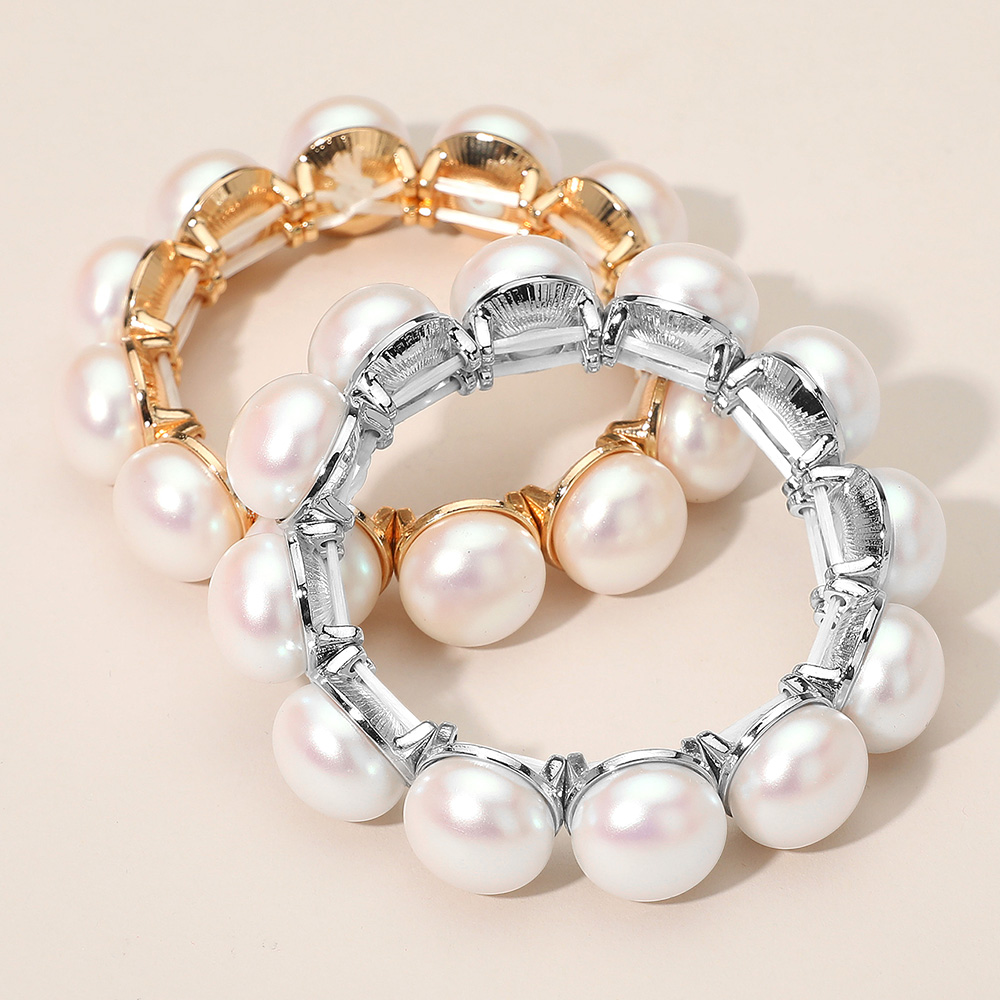 Elegant Round Pearl Beaded Stretch Statement Bracelet