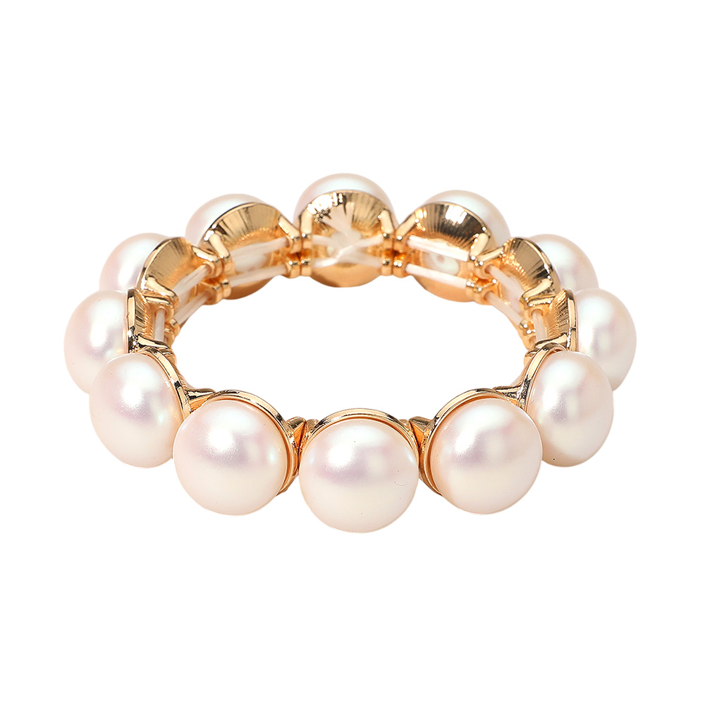 Details • Size : 0.7" H • Stretchable • Add timeless elegance to your accessories with this pearl statement bracelet featuring a classic beaded stretch design. Perfect for weddings, parties, or everyday sophistication, this bracelet enhances any outfit with refined charm and effortless style. • Lead and Nickel Compliant