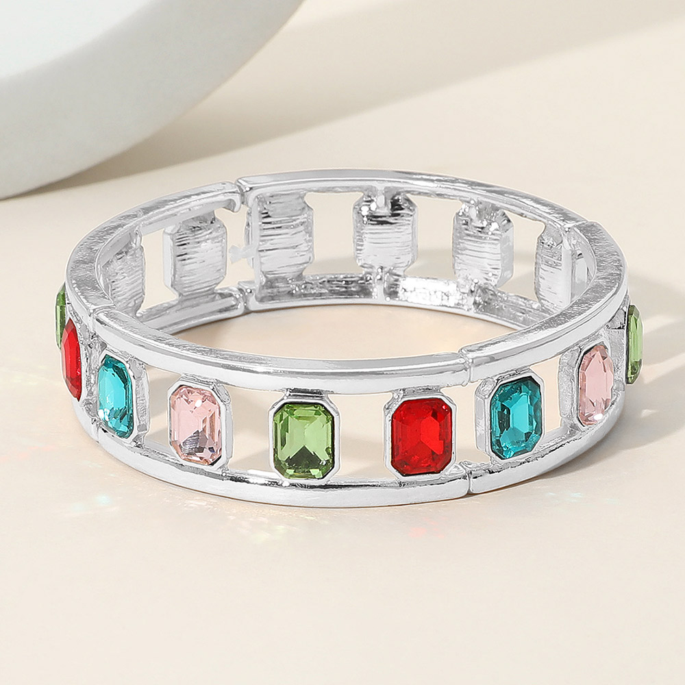 Emerald Cut Stone Embellished Open Frame Stretch Bracelet Emerald Cut Stone Embellished Open Frame Stretch Bracelet