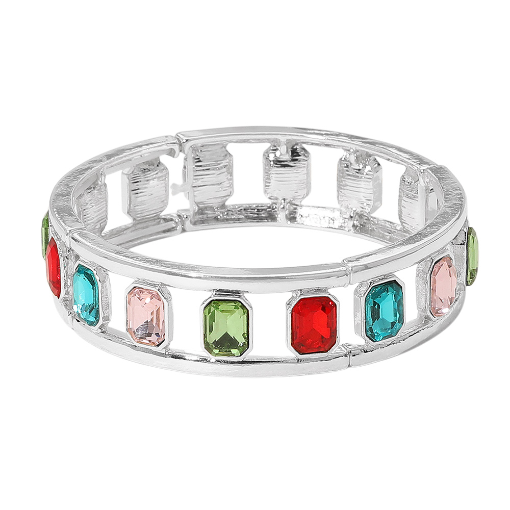 Emerald Cut Stone Embellished Open Frame Stretch Bracelet