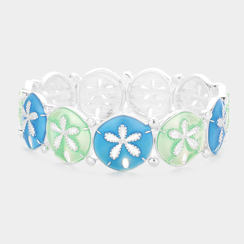Enamel Sand Dollar Starfish Turtle Fish Shell Stretch Bracelet