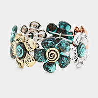 "Faith Hope Love Joy Wish" Metal Flower Stretch Bracelet