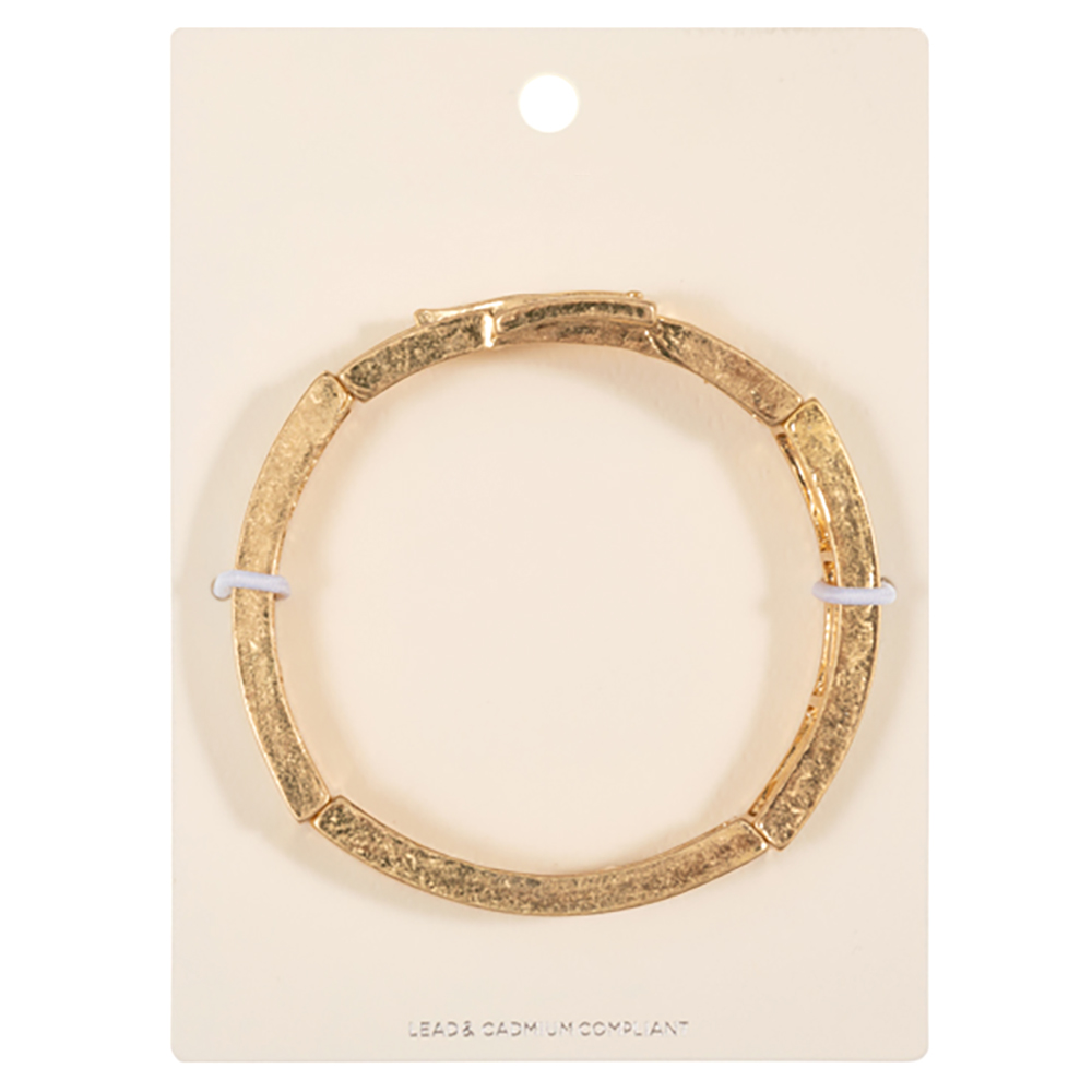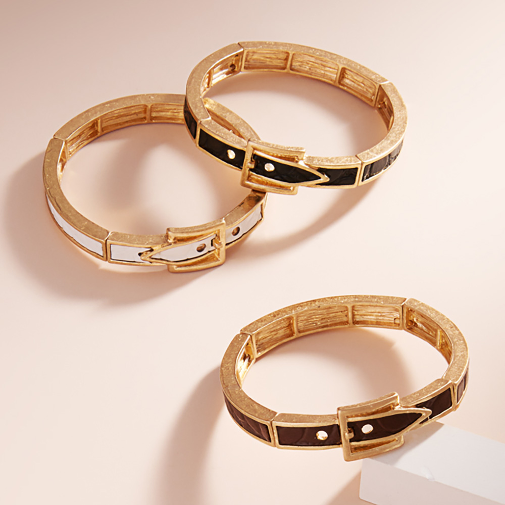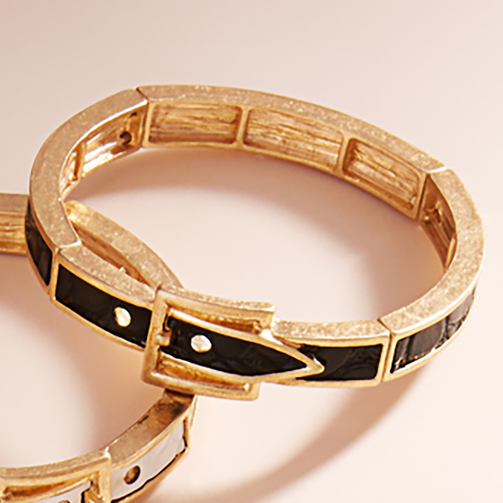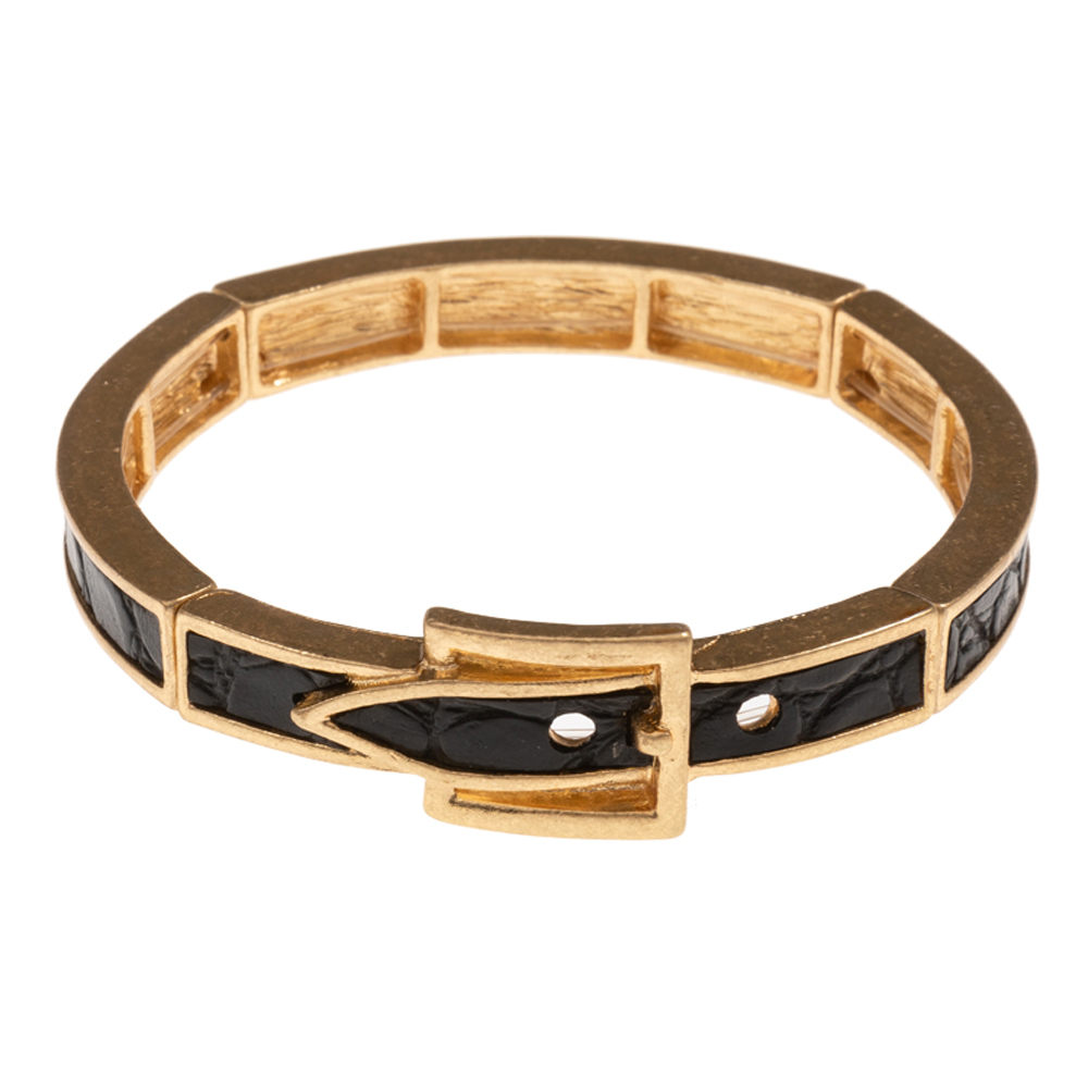 Frozen Belt Shaped Vintage Metal with Embossed Faux Leather Stretch Bracelet