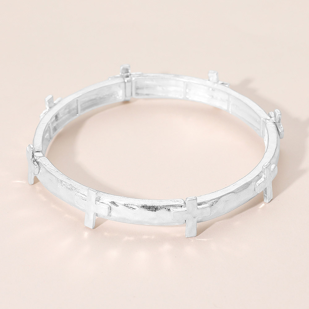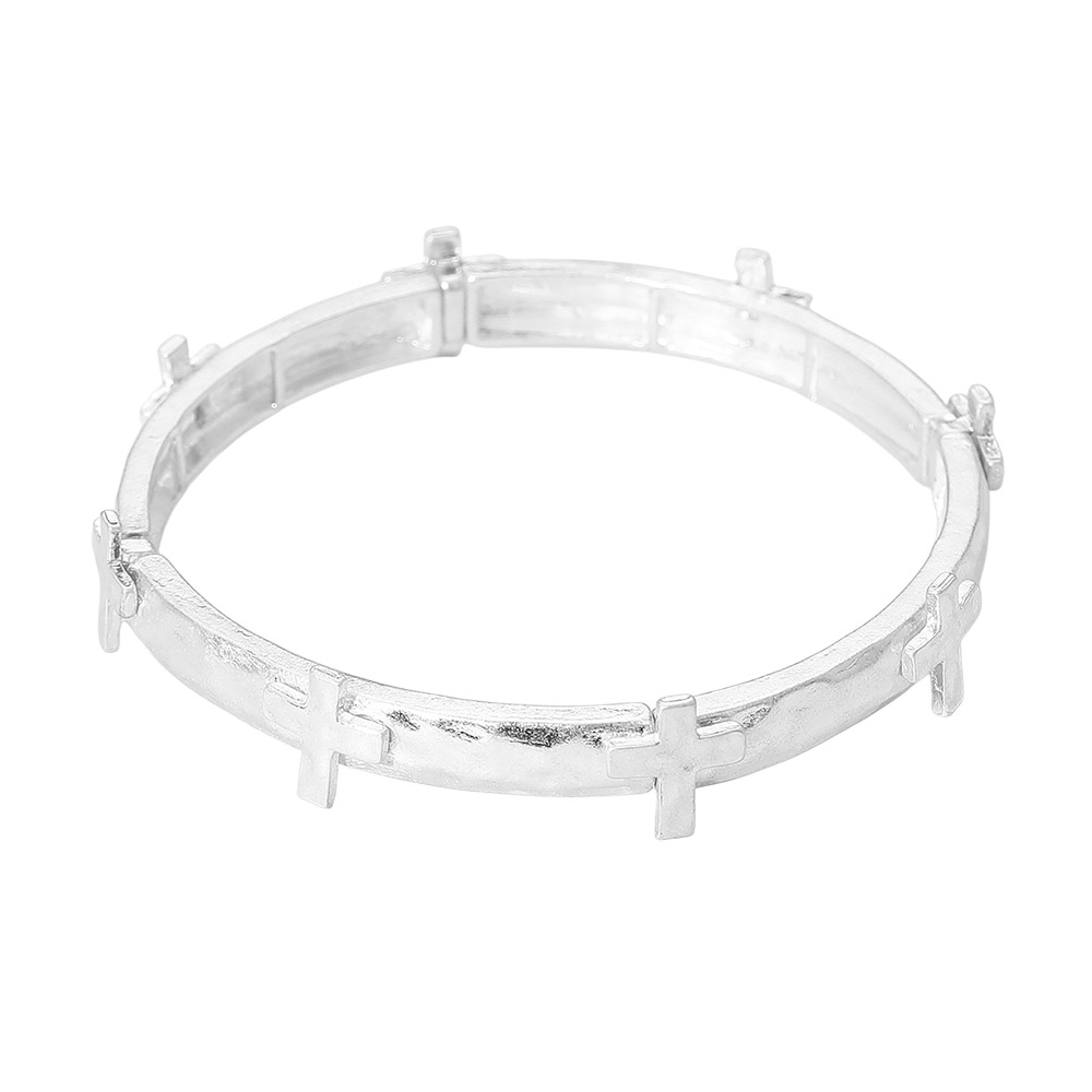 Hammered Brushed Metal Cross Accent Stretch Bracelet Hammered Brushed Metal Cross Accent Stretch Bracelet