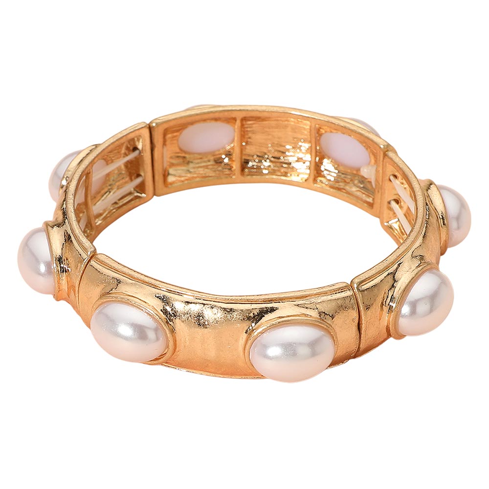 Details • Size : 0.6" H • Stretchable • This textured stretch bracelet is adorned with oval cabochon-style accents, giving it a bold and artistic appeal. Designed for comfort and easy wear, it’s a versatile piece that adds a touch of statement style to both casual and dressy outfits. • Lead and Nickel Compliant