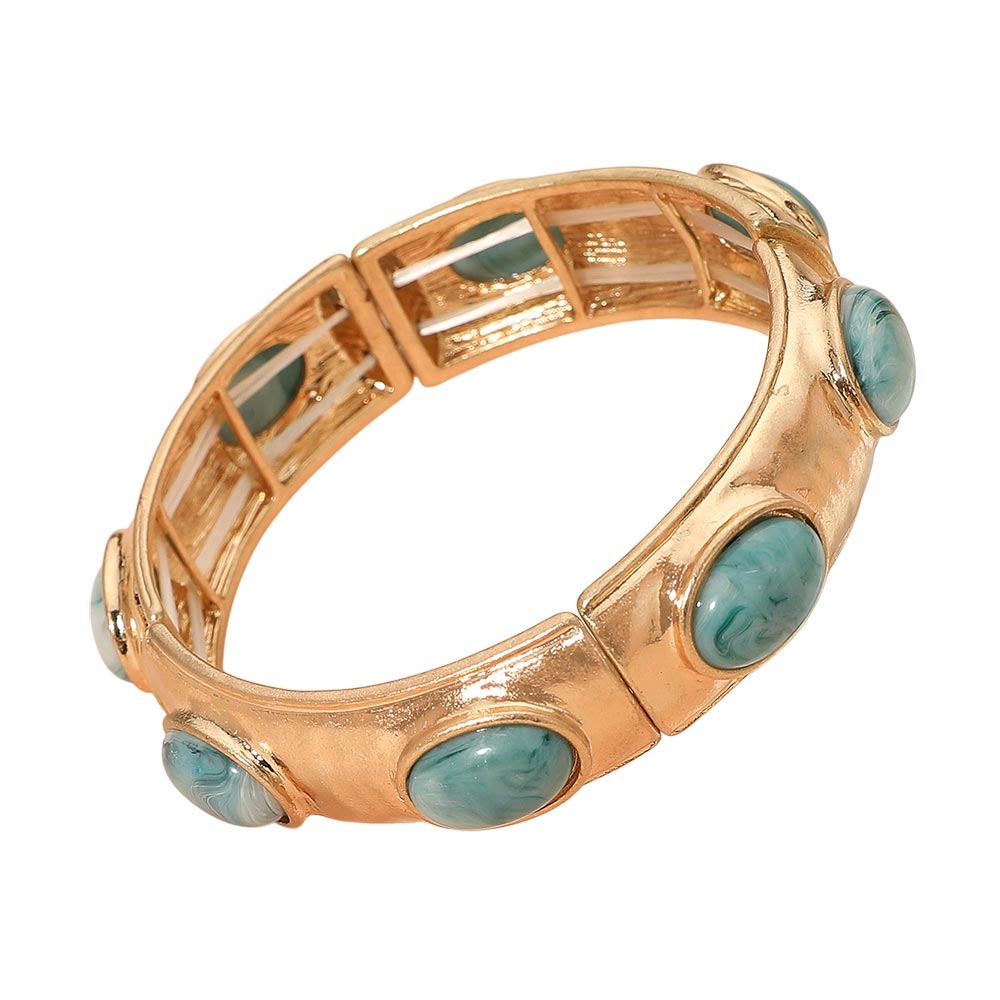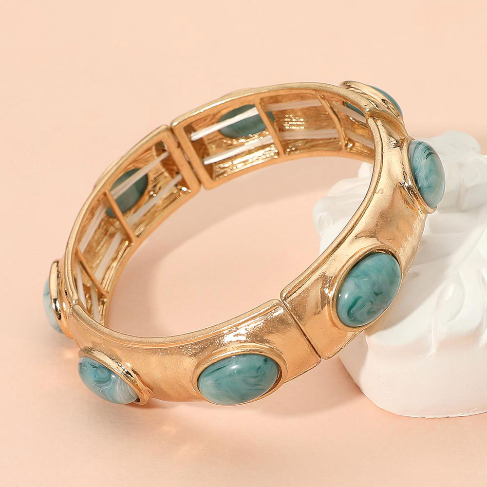 Marbled Oval Stone Accent Hammered Metal Beaded Stretch Bracelet Marbled Oval Stone Accent Hammered Metal Beaded Stretch Bracelet Marbled Oval Stone Accent Hammered Metal Beaded Stretch Bracelet