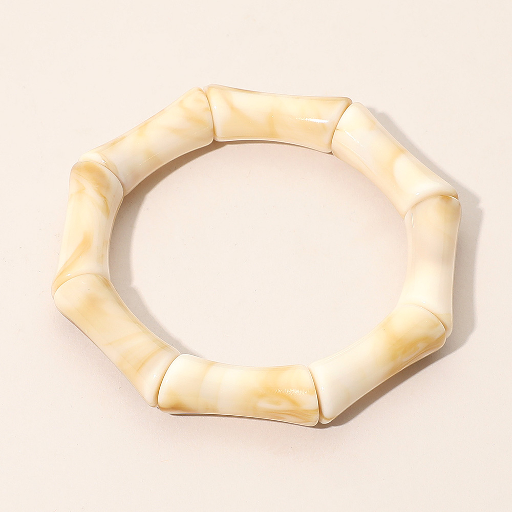 Details • Size : 0.5" H • Stretchable • Stylish bamboo-inspired stretch bracelet featuring a smooth marbled finish and natural aesthetic. Lightweight and versatile, it adds a touch of modern charm to casual outfits and layered looks, making it an effortless everyday accessory.
