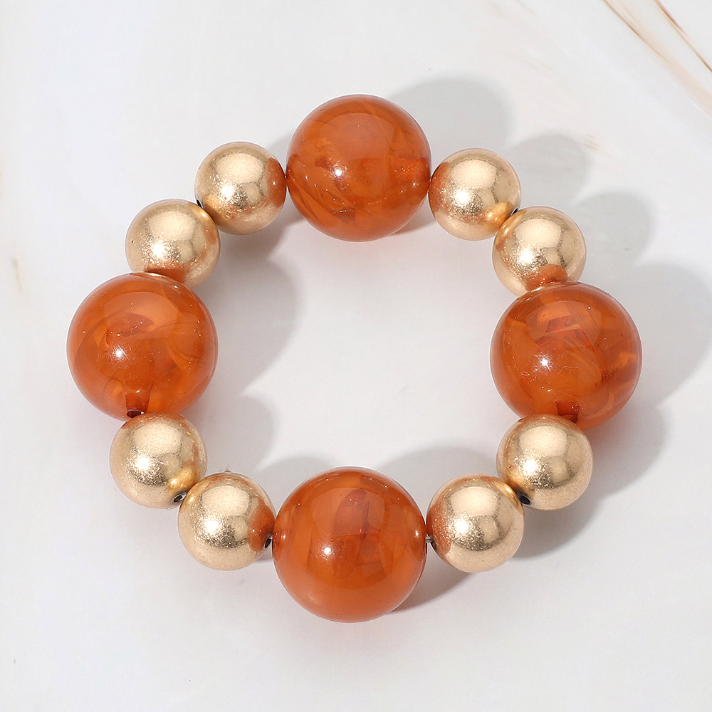 Metal Ball Bold Marbled Resin Ball Beaded Stretch Bracelet