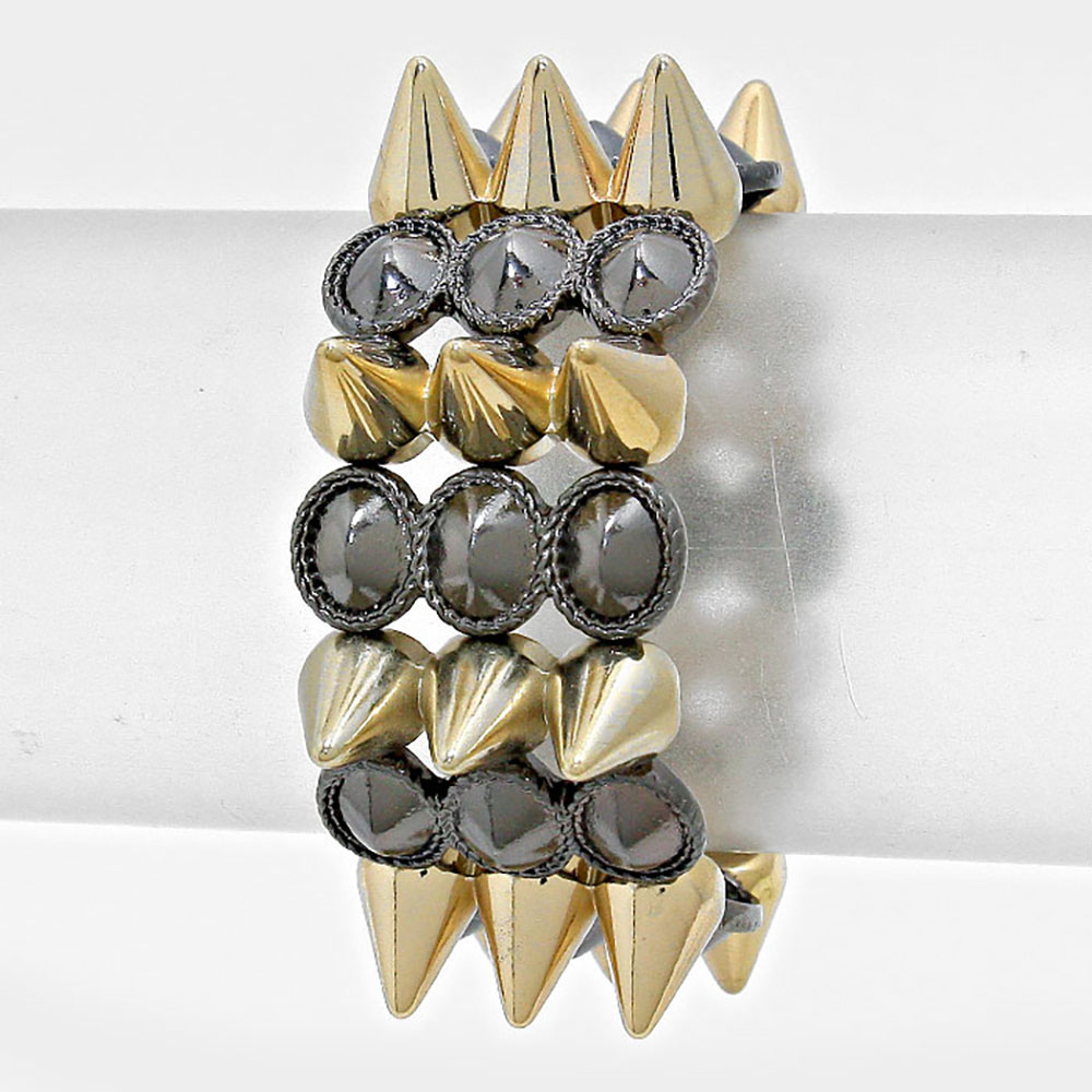 Oval Glass Stone Embellished Bling Studded Pointed Faux Leather Cuff Bracelet