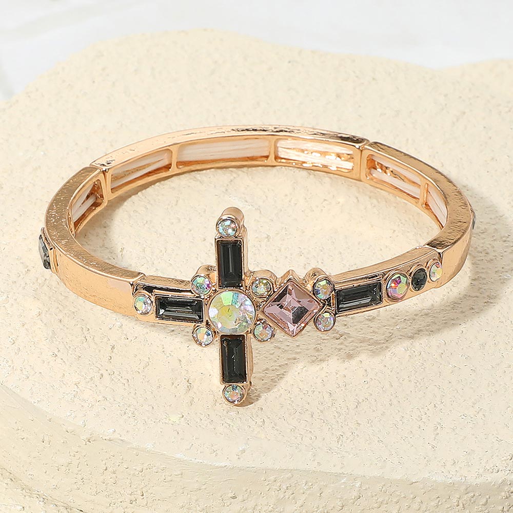 Details • Size : 0.7" H • Stretchable • Enhance your style with this elegant bracelet featuring a cross centerpiece adorned with sparkling gemstones. Its timeless design and secure fit make it perfect for both casual and dressy looks, offering a meaningful touch and lasting shine. • Lead and Nickel Compliant
