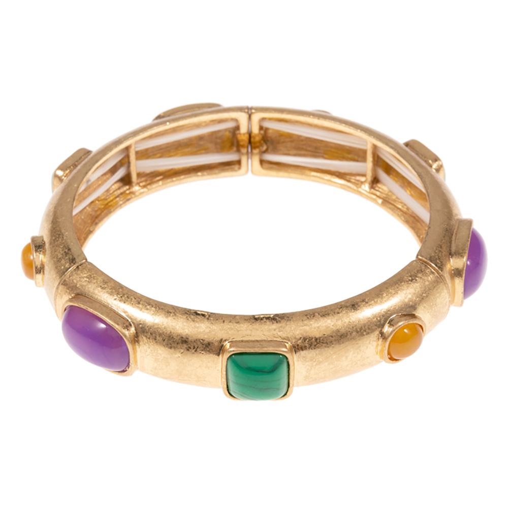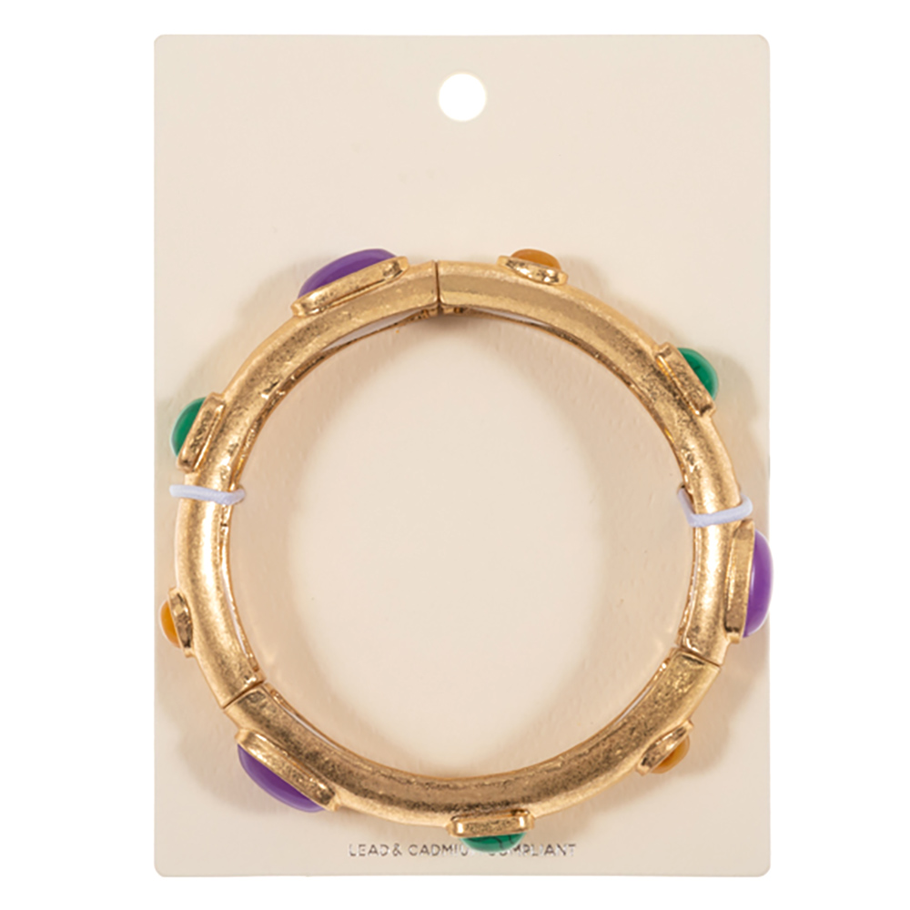 Natural Stone Pointed Brushed Metal Stretch Bracelet
