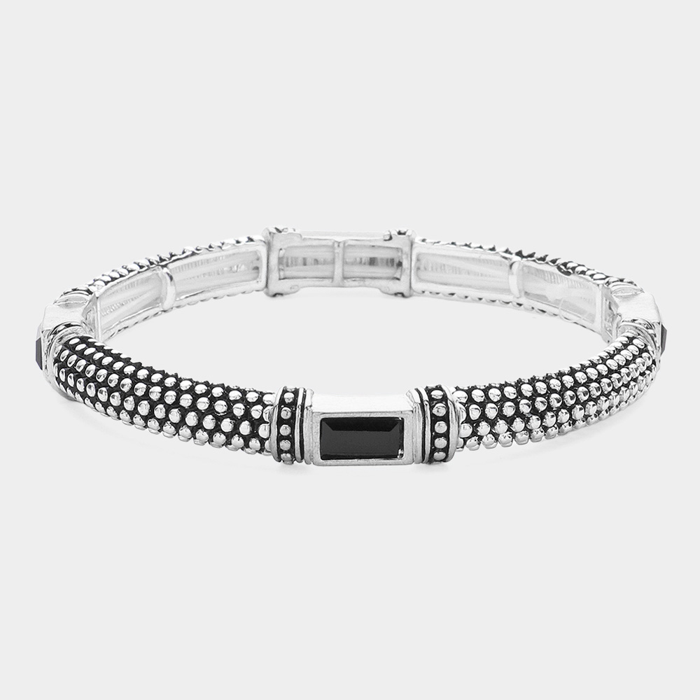 Onyx Bar Pointed Metal Caviar Stretch Bracelet