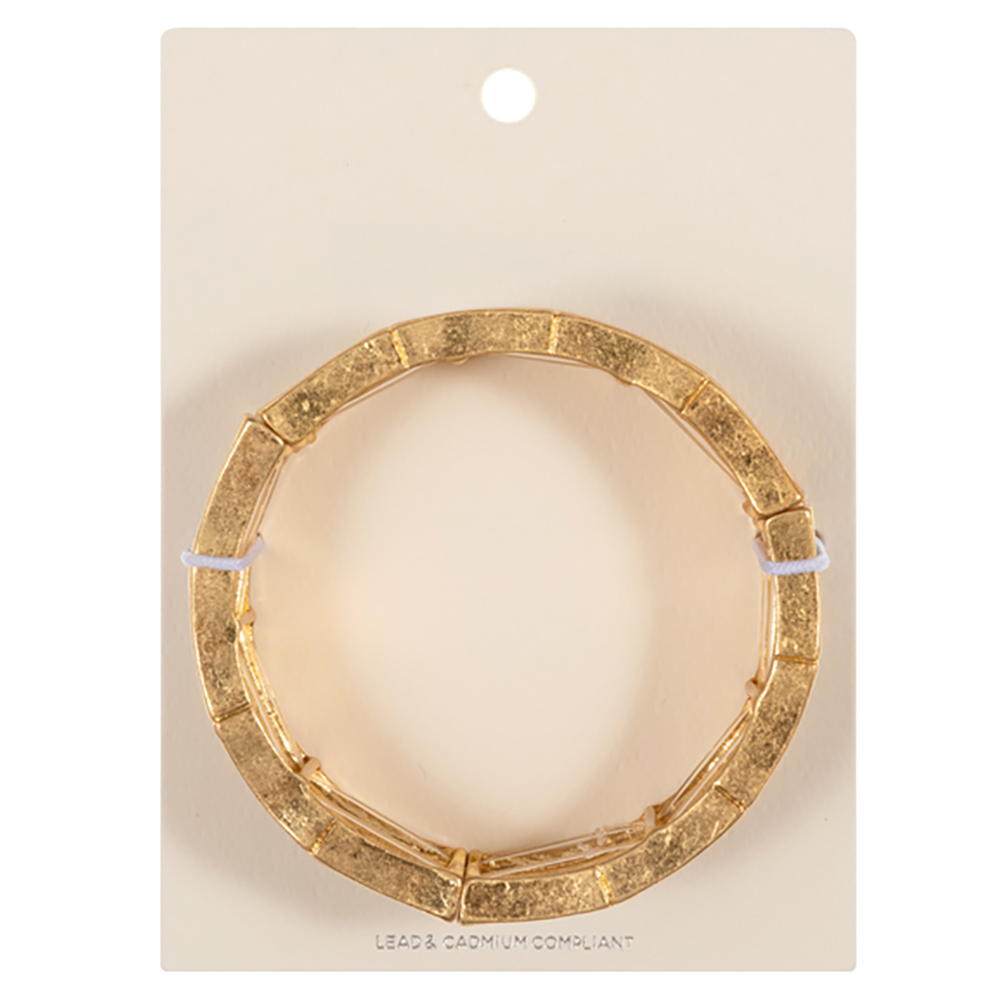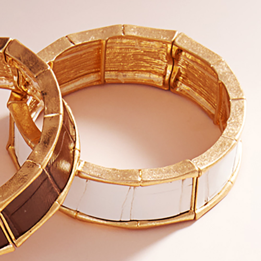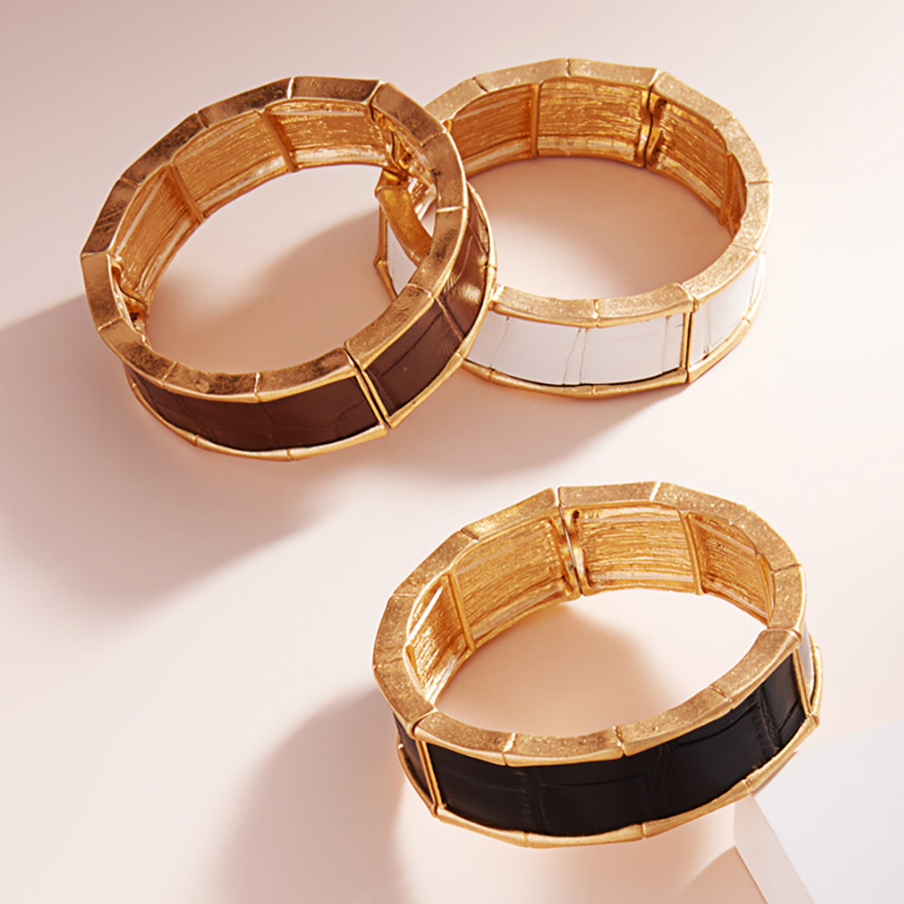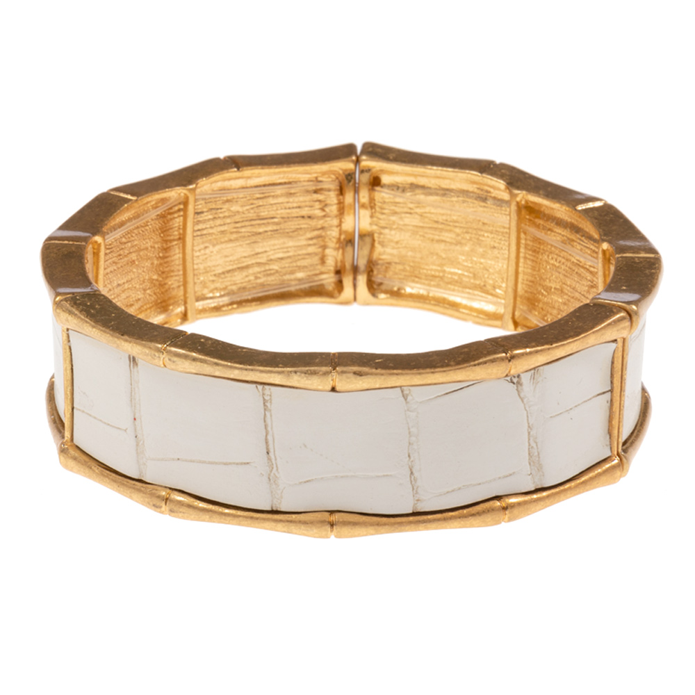 Organic Shaped Vintage Metal With Embossed Faux Leather Stretch Bracelet